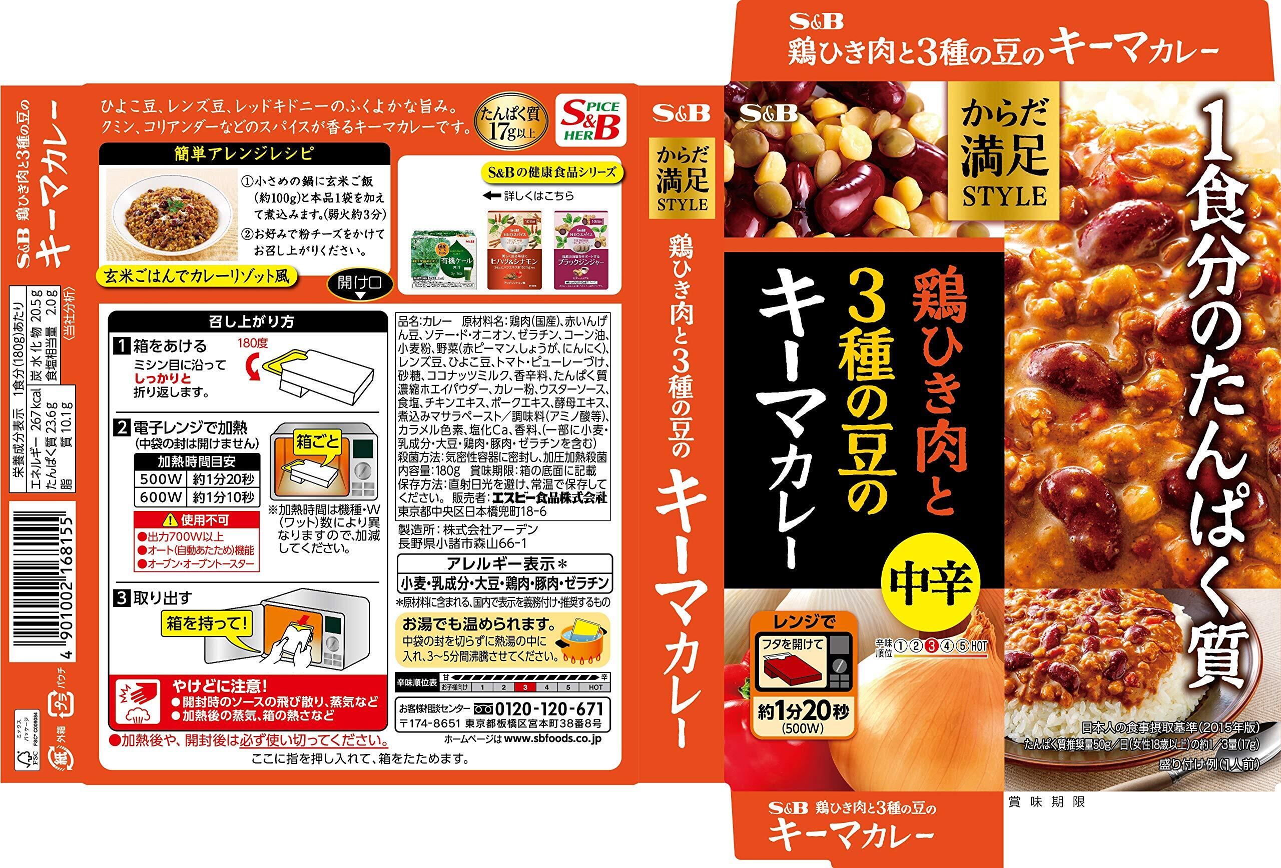 S&B エスビー食品 からだ満足STYLE 鶏ひき肉と3種の豆のキーマカレー中辛 180G ×6箱