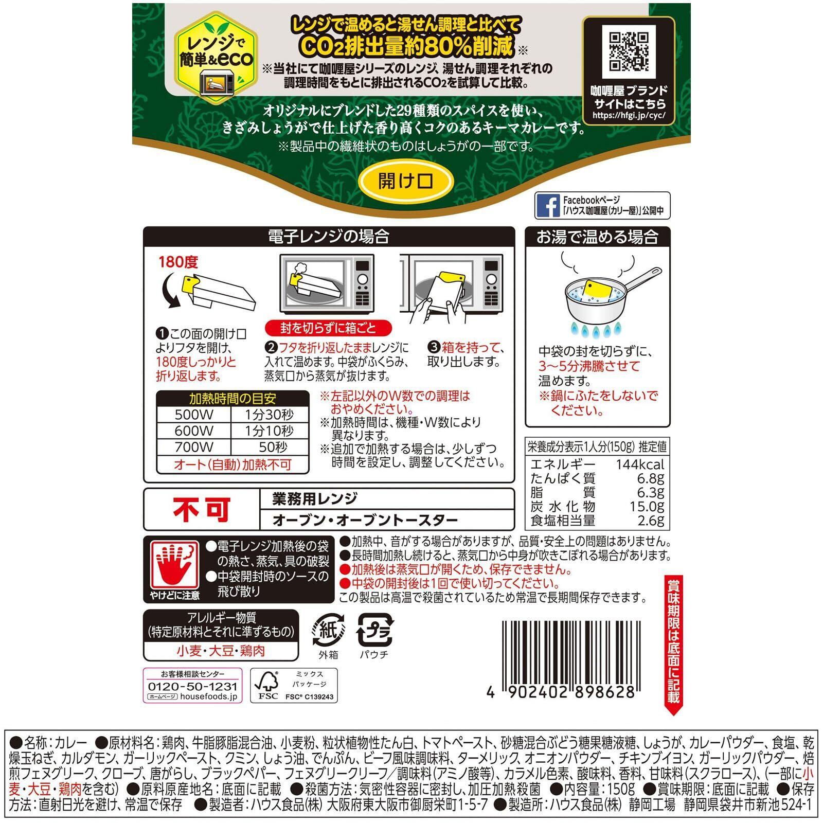 人気のカリー屋カレーがレンジ対応に オリジナルにブレンドした29種類のスパイスに加えて、きざみしょうがの香りを効かせているので、 専門店で食べるような香り高くコクのあるキーマカレーが手軽に楽しめます。 皆様に愛されて19年連続売上第1位 ◆オリジナルにブレンドした29種類のスパイスを使い、きざみしょうがで仕上げた香り高くコクのあるキーマカレーです。 ※粒状植物性たん白を使用 ◆レンジ調理対応パウチ