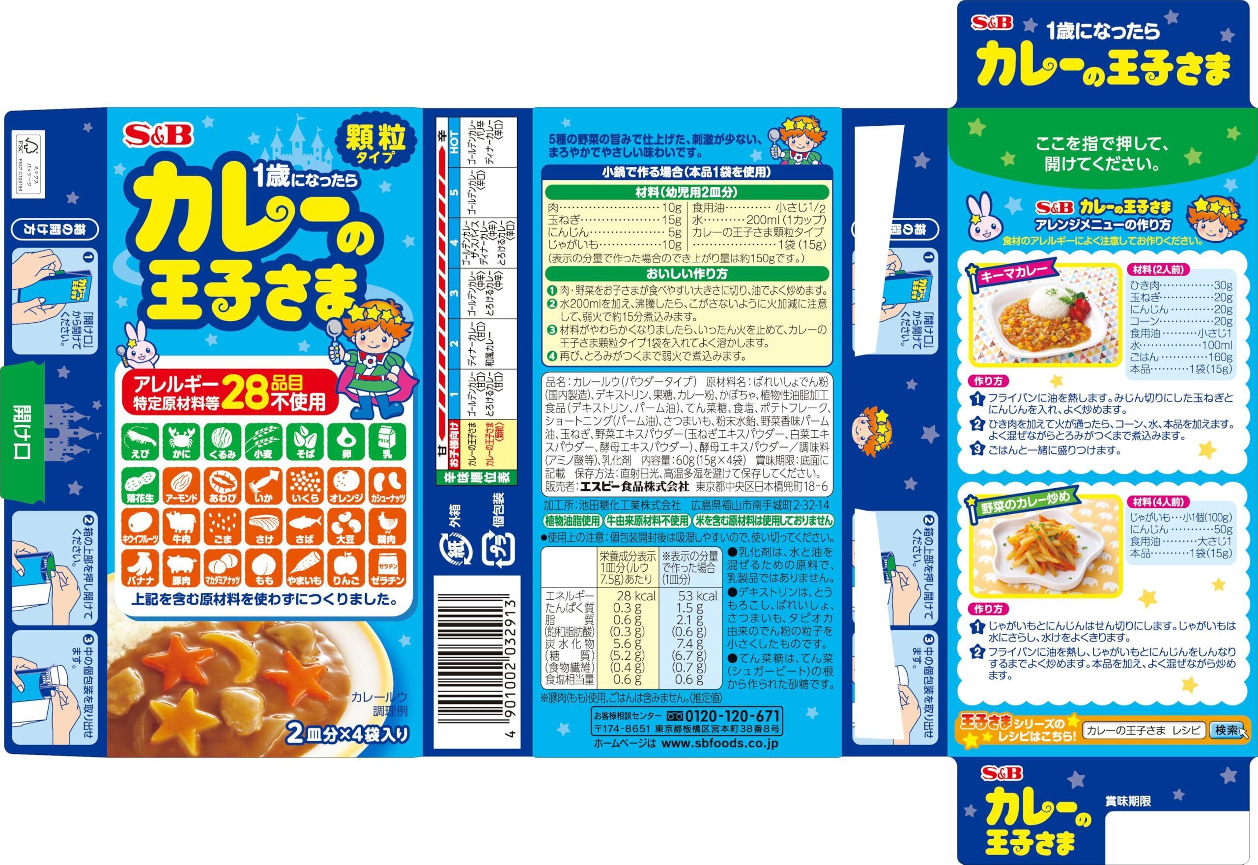 王子さまシリーズ S&B カレーの王子さま 顆粒 60g×4個