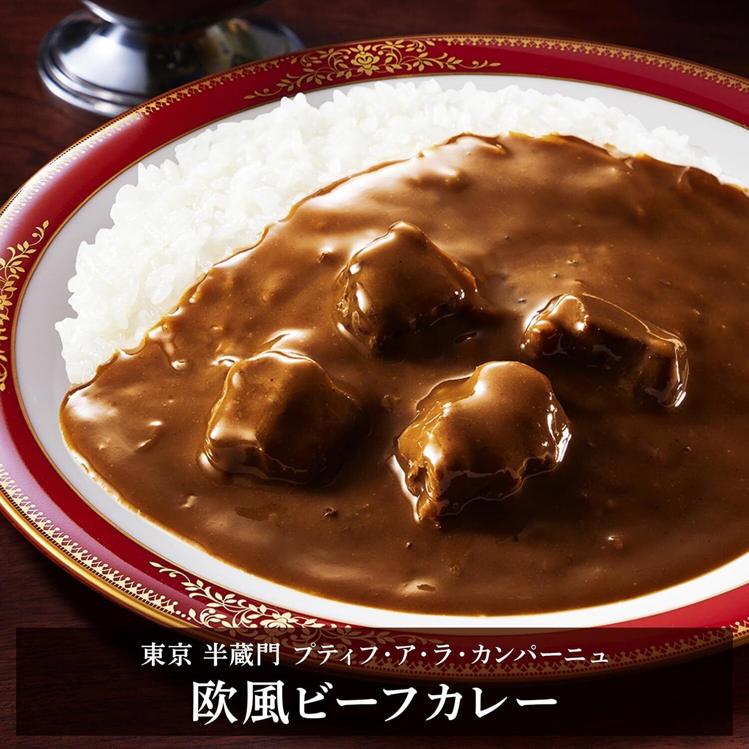 ハーブ煮込み牛肉(国内製造)(牛肉、食塩、香辛料)、牛脂豚脂混合油脂、野菜(玉ねぎ、しょうが、にんにく)、ソテー・ド・オニオン、乳等を主要原料とする食品(脱脂粉乳、牛乳、ホエイパウダー、その他)、リンゴペースト、小麦粉、バター、デキストリン、砂糖、ビーフペースト、バナナピューレ、オニオンパウダー、カレー粉、玉ねぎエキス、食塩、香辛料、ビーフエキス/カラメル色素、調味料(アミノ酸等)、増粘剤(加工デンプン、増粘多糖類)、pH調整剤、乳化剤、香料、(一部に小麦・乳成分・牛肉・大豆・バナナ・豚肉・りんごを含む)