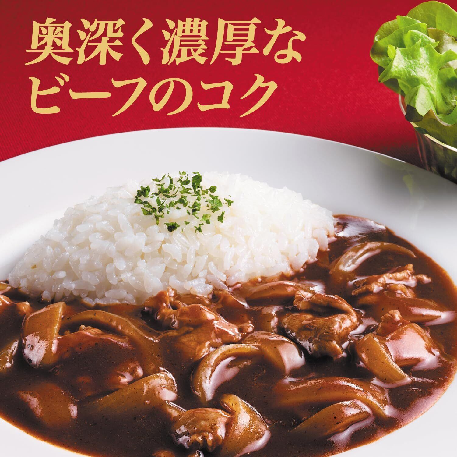 玉ねぎ(中国産、国産)、牛肉、デミグラスソース、発酵調味液、ホワイトルウ、トマトケチャップ、ビーフエキス調味料、砂糖、牛脂、ローストオニオンペースト、バター、ブラウンルウ、ポークブイヨン、にんにくペースト、濃縮トマト、ワインシラップ、赤ワイン、食塩、香辛料/増粘剤(加工でん粉)、着色料(カラメル)、調味料(アミノ酸等)、(一部に乳成分・小麦・牛肉・大豆・豚肉・ゼラチンを含む)