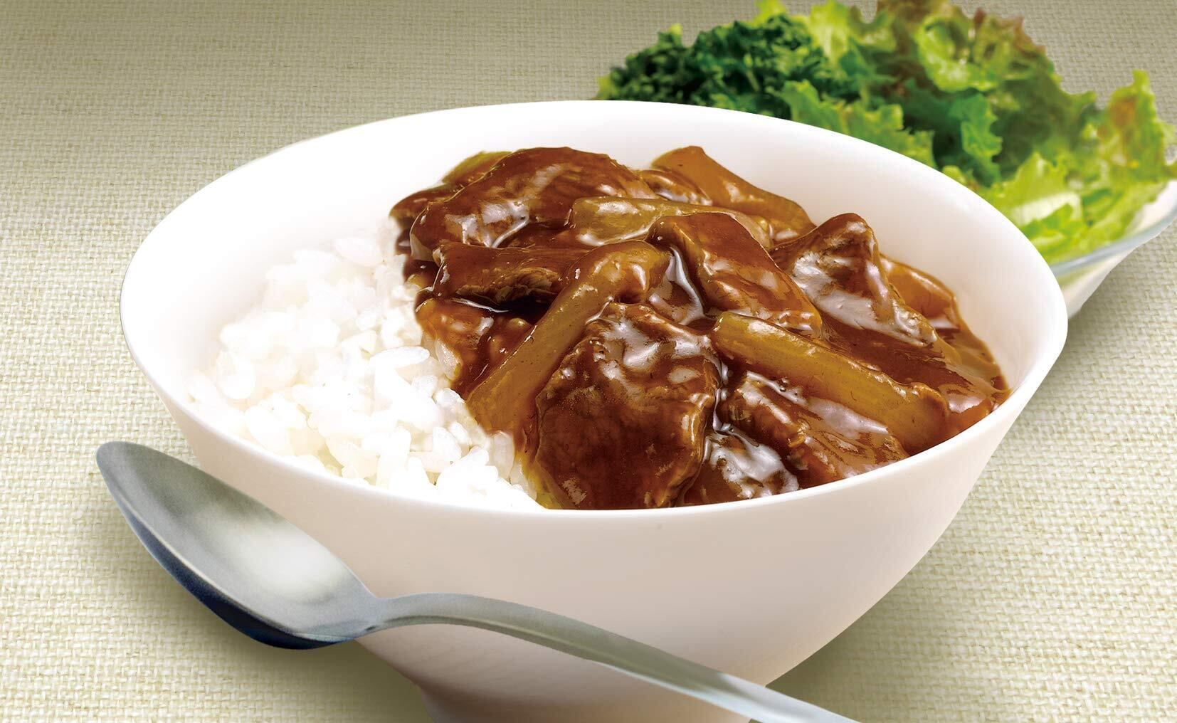 原材料:玉ねぎ(国産)、牛肉、デミグラスソース、ソテーオニオン、トマトケチャップ、小麦粉、発酵調味液、食用油脂(牛脂、なたね油、ラード)、砂糖、チキンブイヨン、ポークブイヨン、にんにくペースト、食塩、香辛料/増粘剤(加工でん粉)、着色料(カラメル)、調味料(アミノ酸等)、(一部に乳成分・小麦・牛肉・大豆・鶏肉・豚肉・ゼラチンを含む)