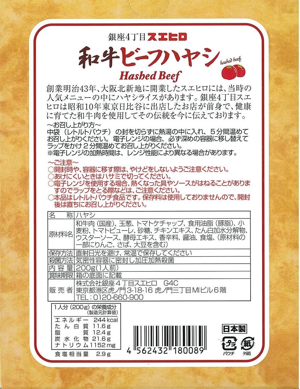 銀座4丁目スエヒロ ビーフハヤシ レトルト 黒毛和牛使用 200g×3個