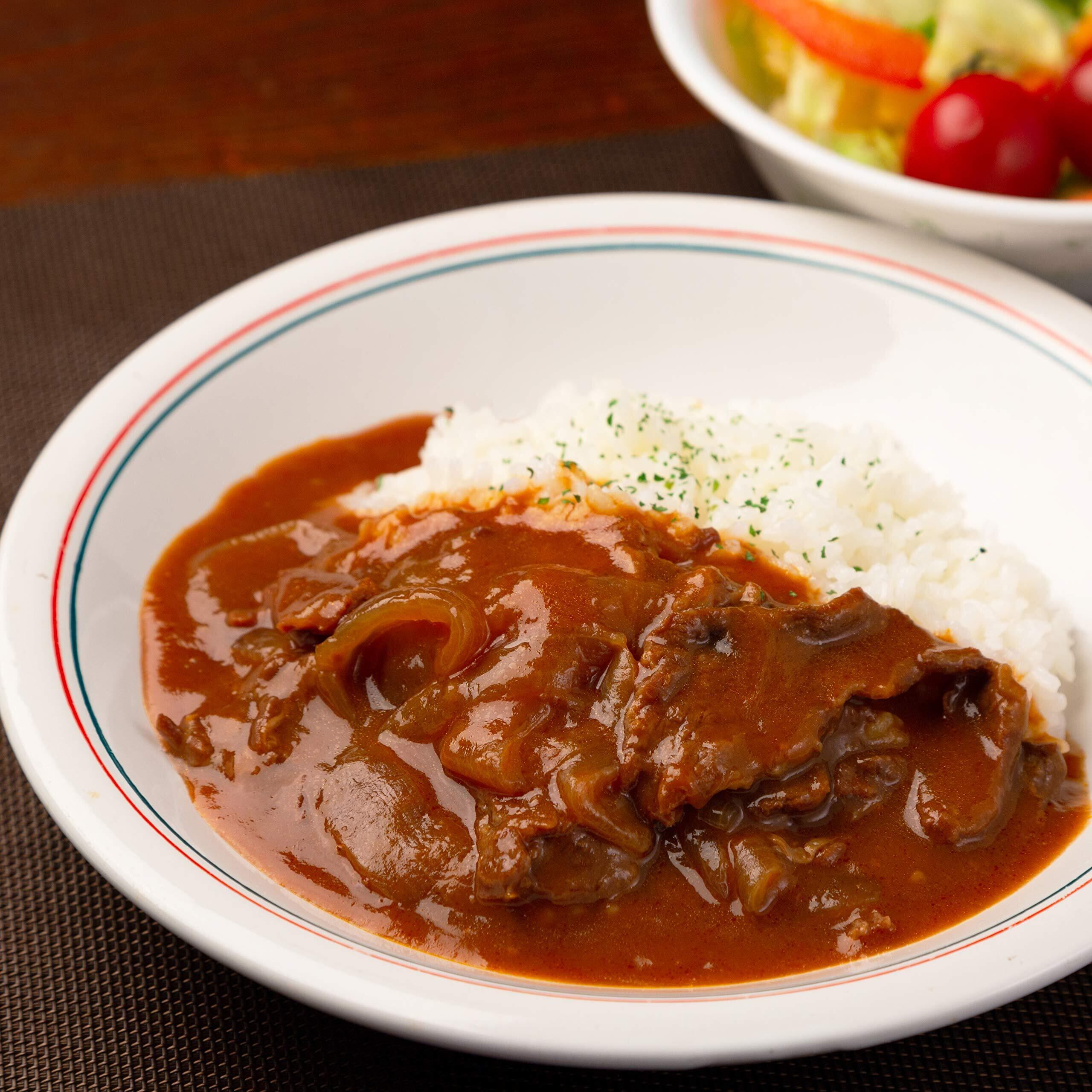 原材料:和牛肉(国産)、玉ねぎ、トマトケチャップ、食用油脂(豚脂)、小麦粉、トマトピューレ、砂糖、チキンエキス、たん白加水分解物、ウスターソース、酵母エキス、香辛料、醤油、食塩、(原材料の一部に、りんご、さば、大豆を含む)