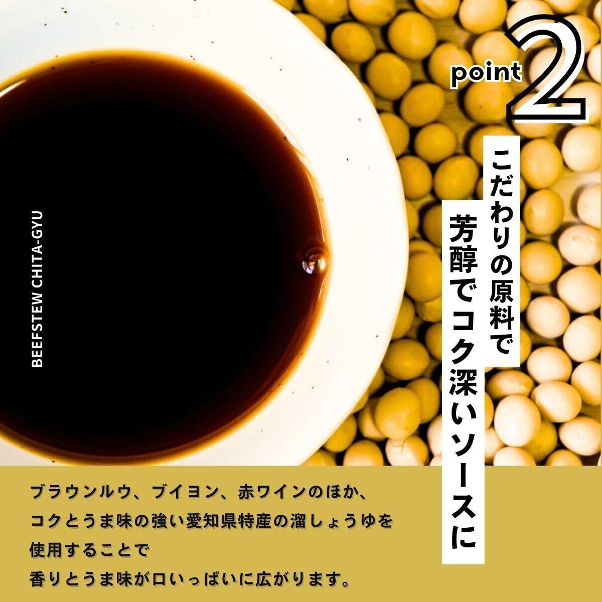 やわらかな肉質と程よい甘さを持つ愛知県知多半島の名産、知多牛を具材として使用し、ブラウンルウ、ブイヨン、赤ワイン、溜しょうゆなどで絶妙な美味しさに仕上げました。芳醇でコク深い味わいのビーフシチューです。