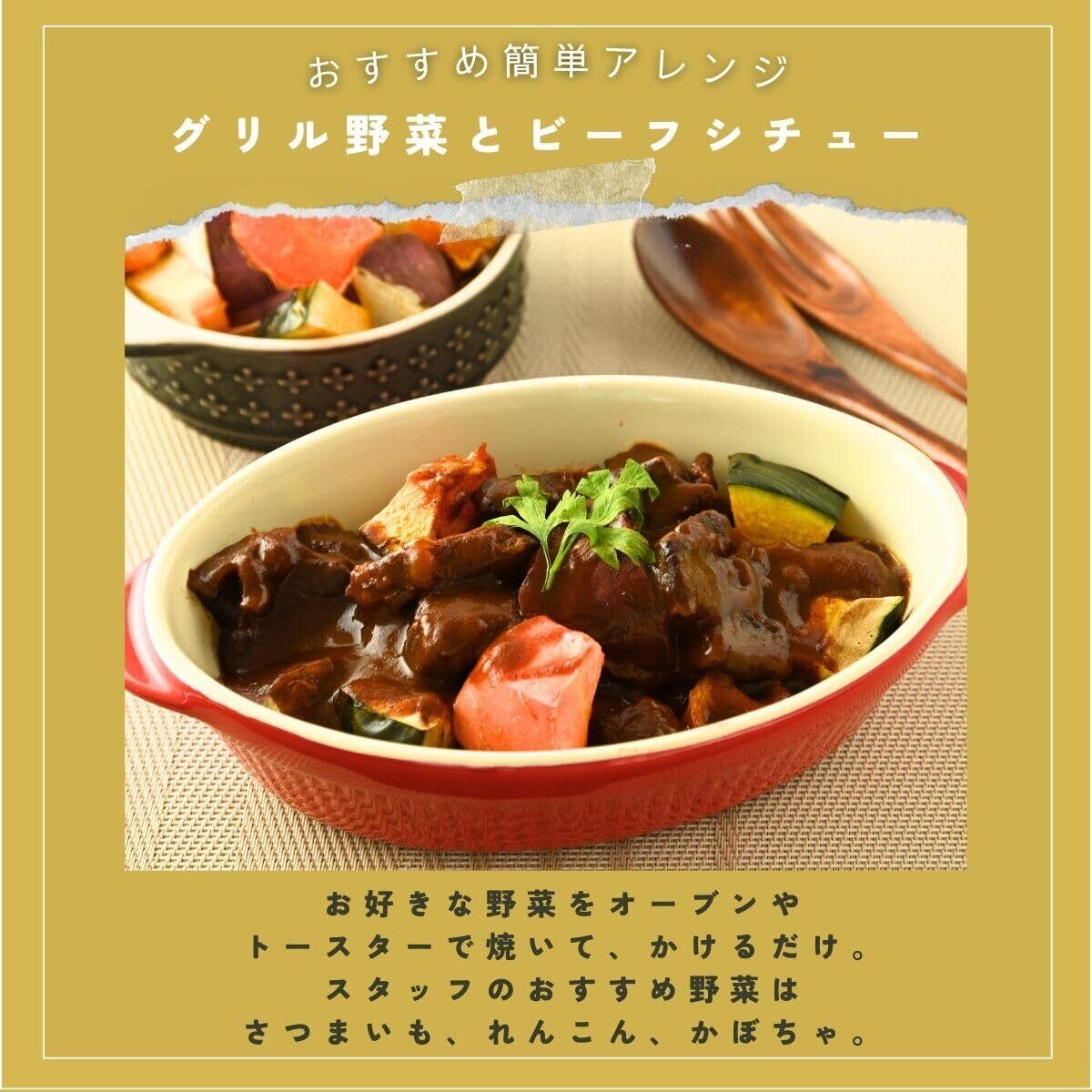 愛知県知多半島の名産、知多牛を具材として使用し、ブラウンルウ、ブイヨン、赤ワイン、溜しょうゆなどで絶妙な美味しさに仕上げました。湯煎などで温めるだけで、簡単にレストランのような味をご家庭で味わえる、贅沢なレトルトビーフシチューです。ギフトにもおすすめ。