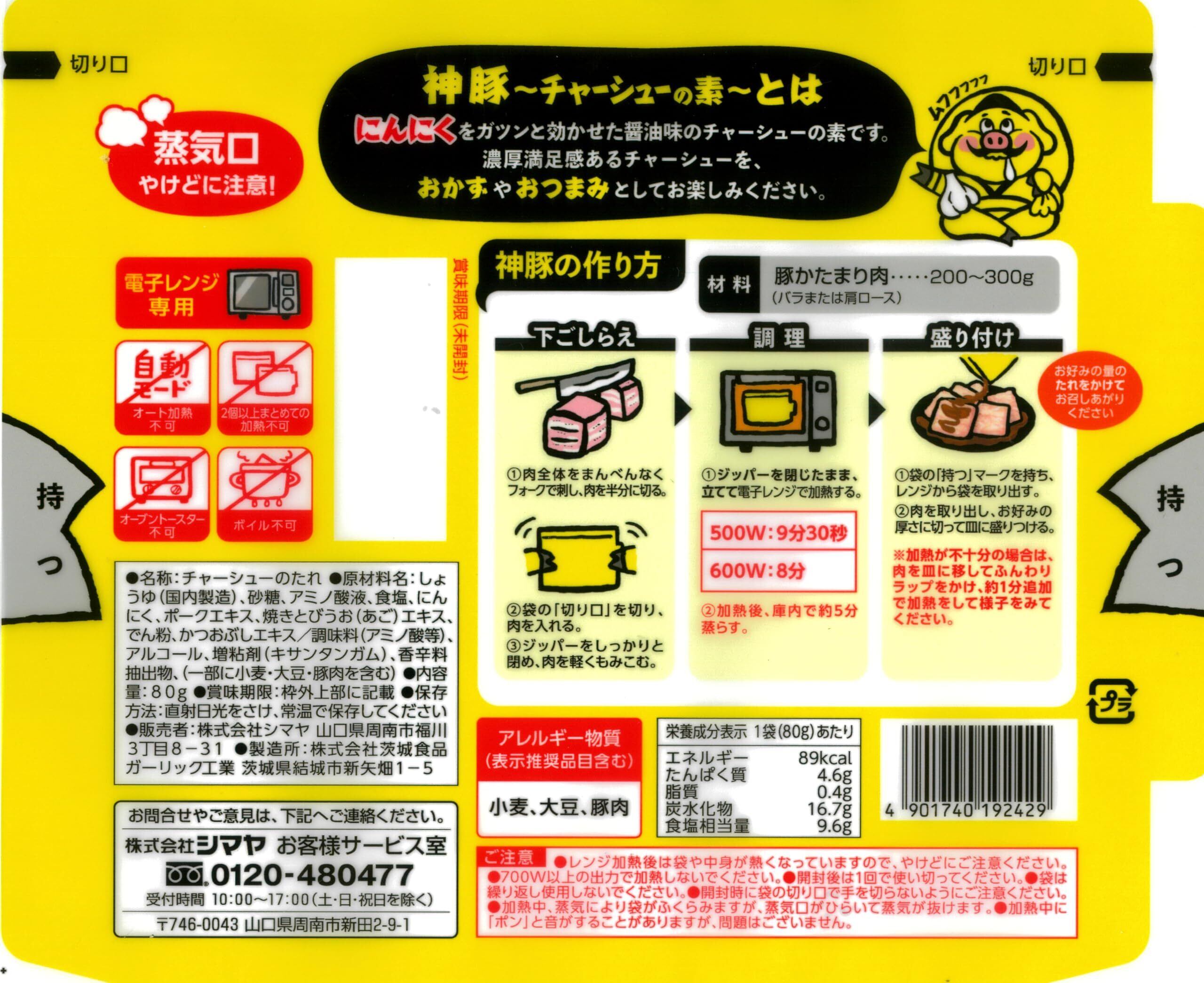 シマヤ レンジで神うま神豚チャーシュー(焼豚の素)80g×10袋