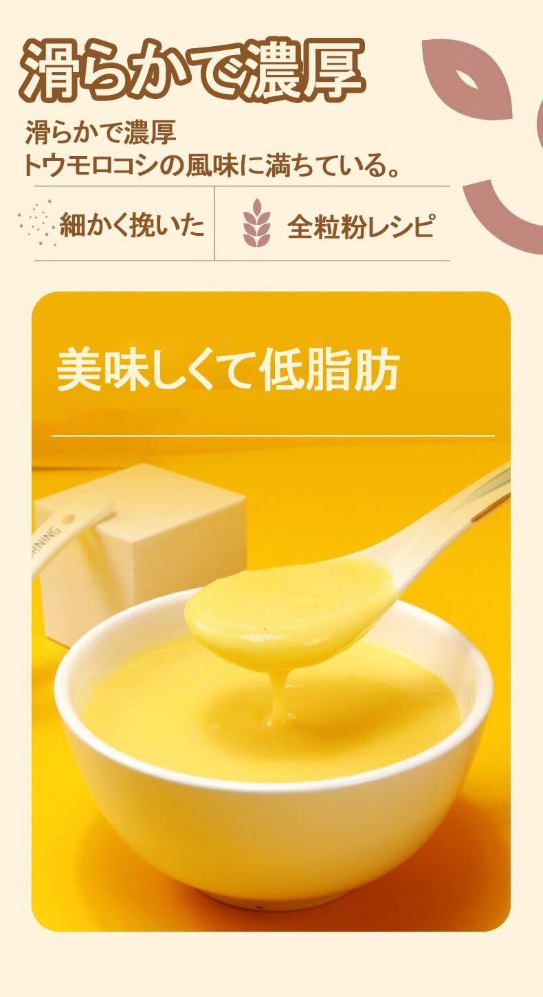 【便利】スプーン3~4杯を容器に入れ、お湯を注いでよくかき混ぜてお召し上がりください。この簡単な調理法により、かぼちゃのコーンペーストは、朝食、昼食、夕食を問わず、毎日の家庭生活において便利で手早い食品となる。