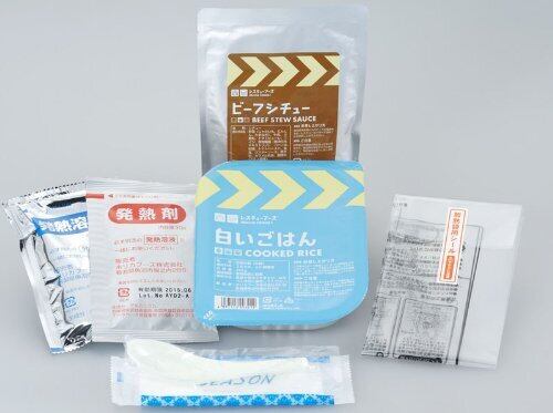 レスキューフーズ 一食ボックス シチュー&ライス 3年保存 非常食・備蓄用 白いごはん 200g、ビーフシチュー 180g