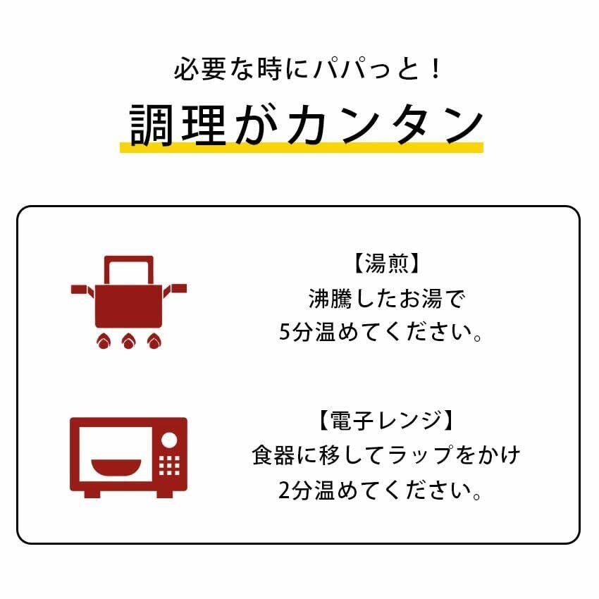 【湯せん】中袋を切らずに沸騰したお湯で3~5分温めてください。【電子レンジ】必ず中袋を開封し、食器などに移しラップをかけて1~3分間温めてください。ご使用の電子レンジで加熱時間が変わります。