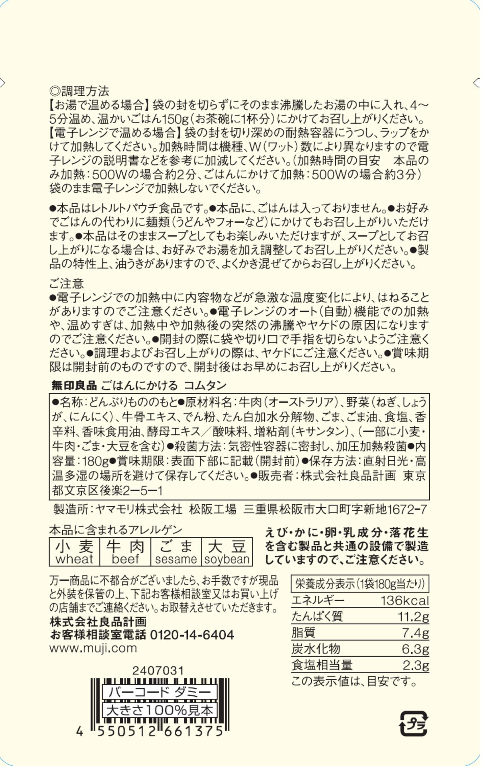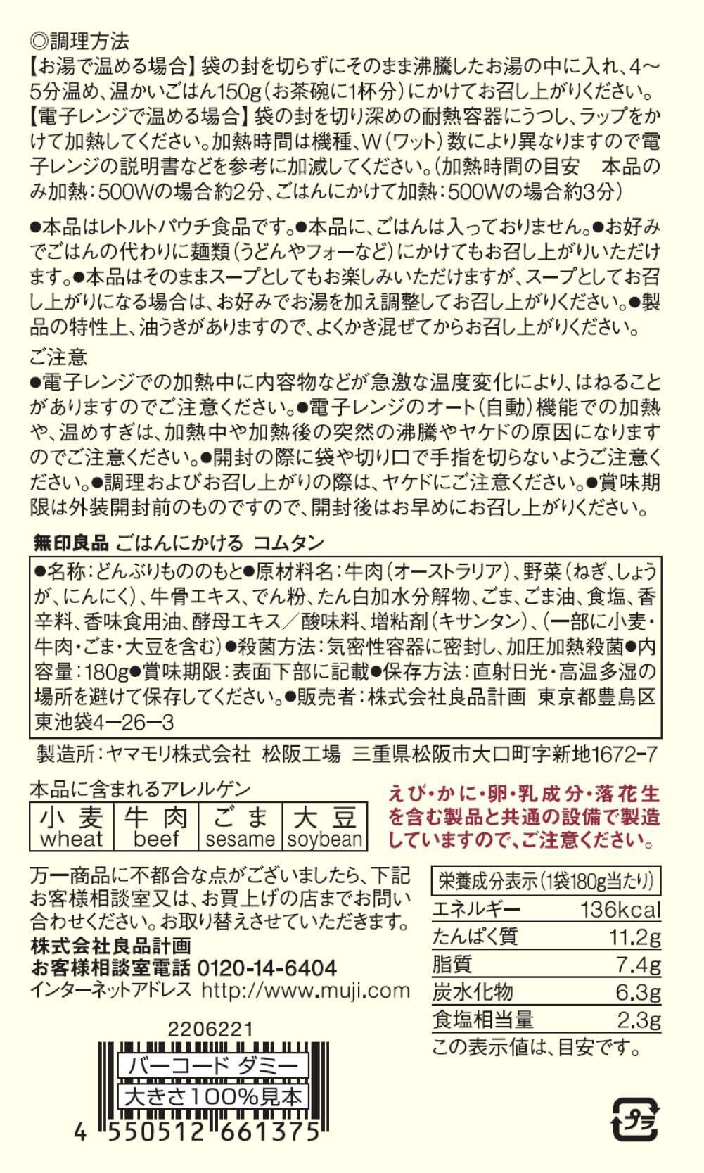 無印良品 ごはんにかける コムタン ・180g(1人前) 12661375