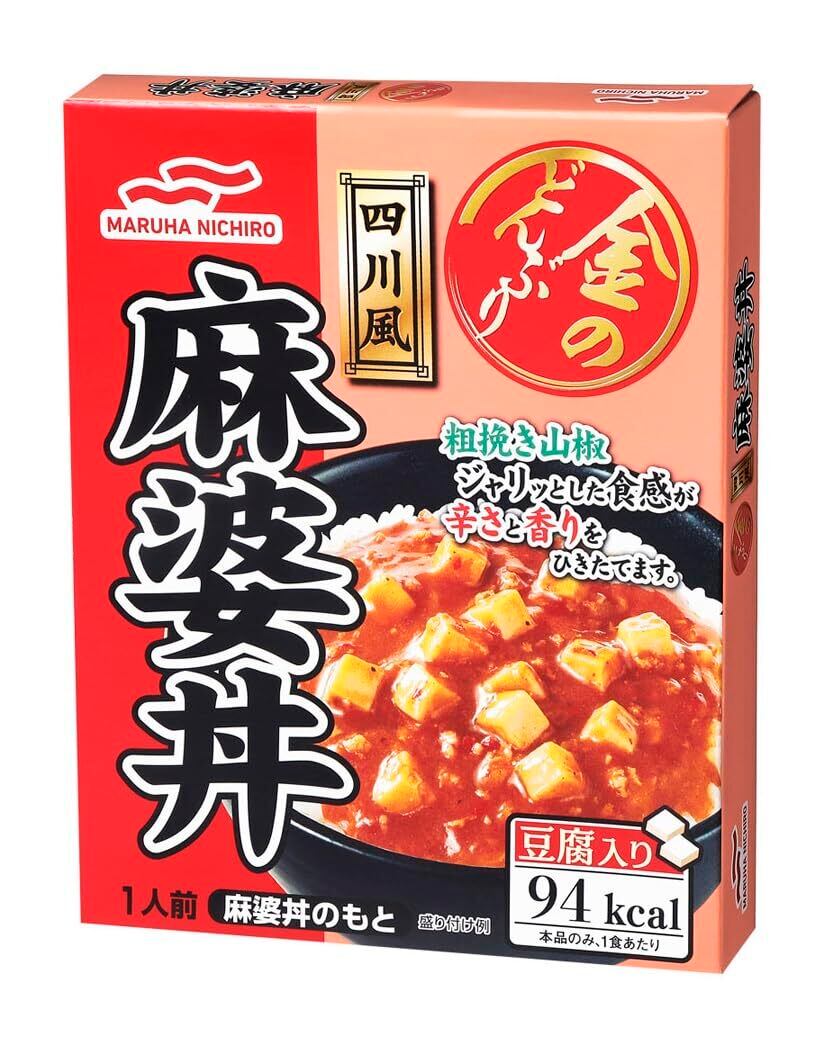 金のどんぶりシリーズ四川風麻婆丼がリニューアルして登場。従来の商品よりも辛みがマイルドになっており、お子様まで食べやすい味付けとなっております。温めてもそのままでもお召し上がりいただけます。レンジまたは湯煎で簡単にどんぶりが出来上がるレトルトどんぶりの素です。