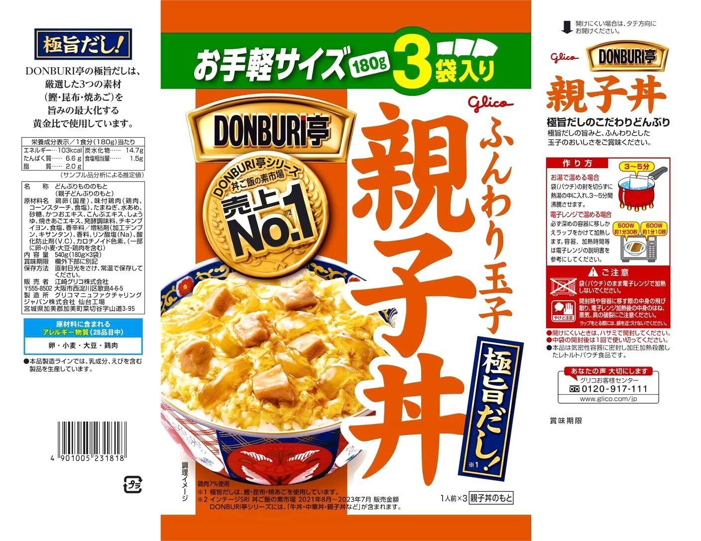 ・グリコのレトルト食品【DONBURI亭】シリーズより、買置きに便利な3食パックのご紹介です。