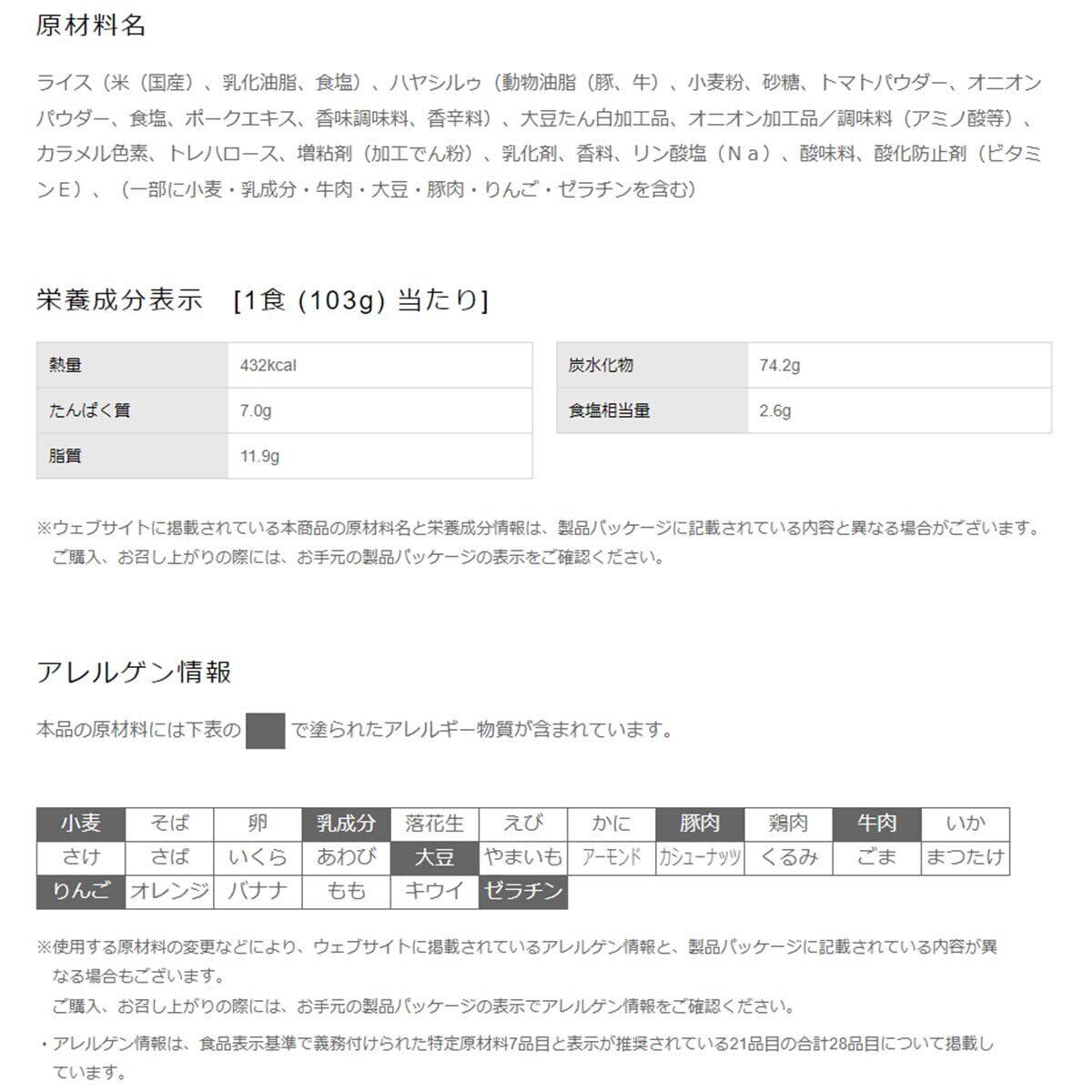 一部に小麦・乳成分・牛肉・大豆・豚肉・りんご・ゼラチンを含む。成分表示などの詳細は、商品パッケージをご覧ください。