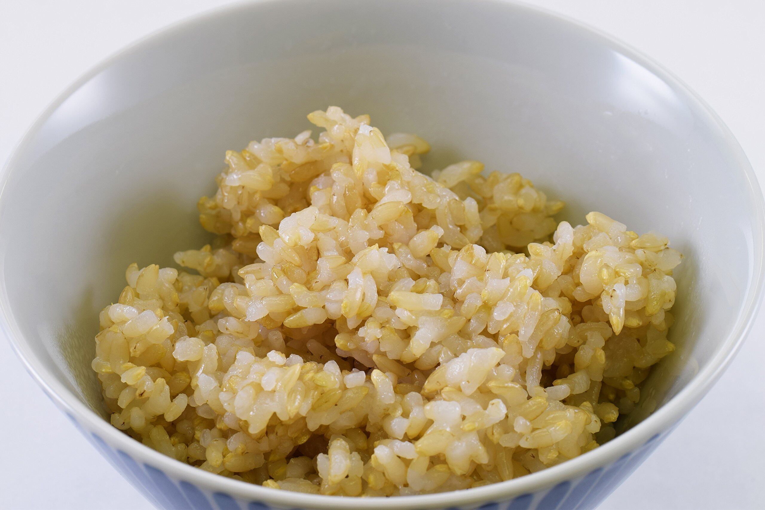 金のいぶきは玄米食用として開発された新品種で、低アミロースで胚芽の大きさは通常玄米の約3倍です。「γ-アミノ酪酸(通称:ギャバ)」「オリザノール」「フェルラ酸」等を豊富に含んだ高機能玄米です。玄米をわずかに発芽させ、柔らかく食べやすく、甘味のある美味しい発芽玄米ごはんに仕上げました。