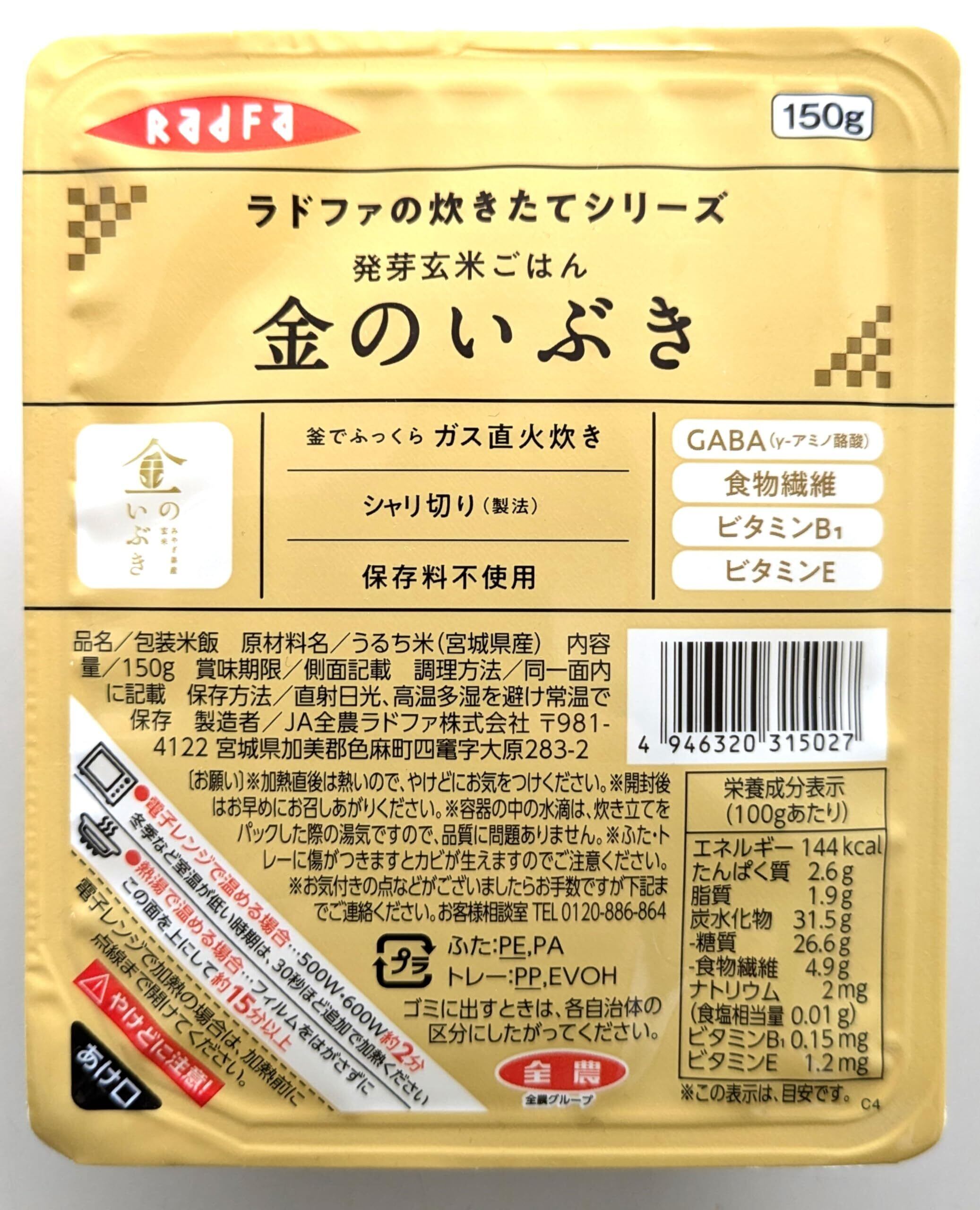 パールライス ラドファ 金のいぶき 発芽玄米 パックご飯 150g×12個