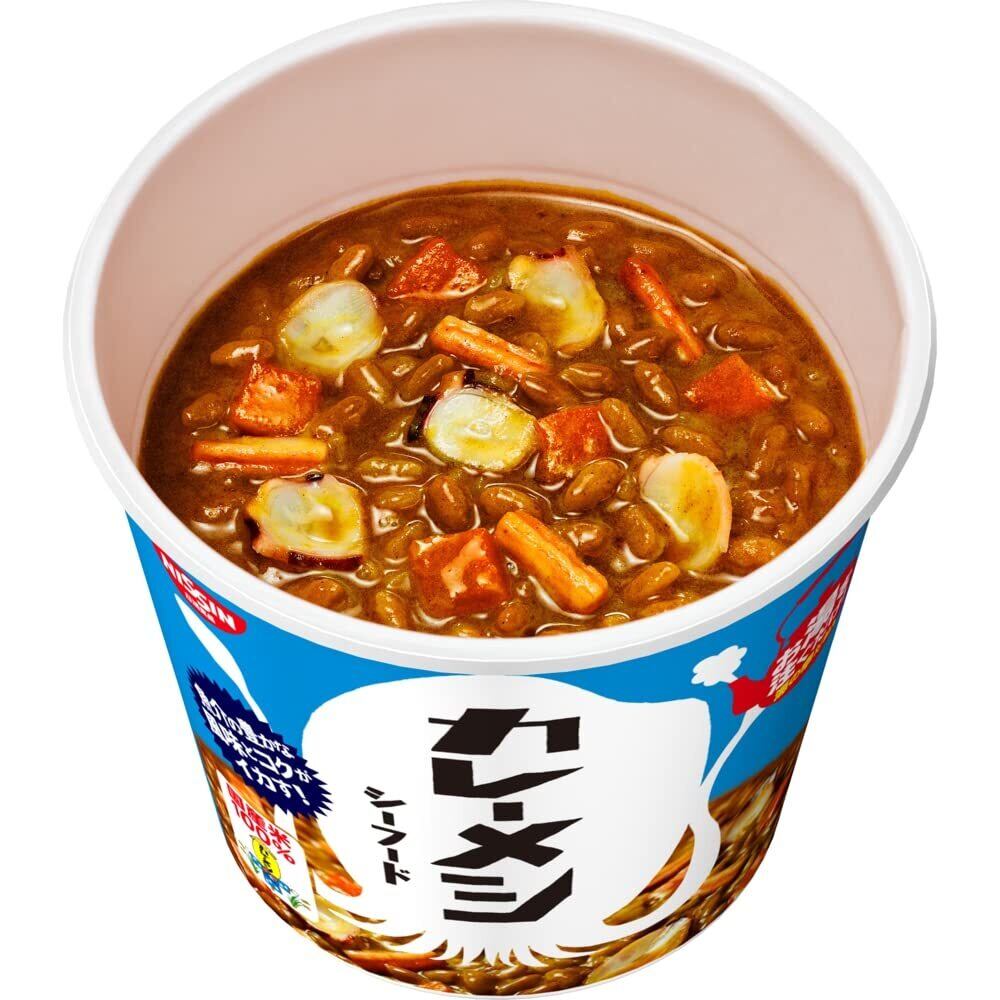 お湯かけ5分でおいしいシーフードカレー! シーフードカレーメシが、春夏限定で帰ってきた!ローレル・タイムなどのスパイスに、魚介の豊かな風味とコクがギュッと詰まった、お湯かけ5分でいつでもどこでも味わえるイカしたシーフードカレーです。 原材料・成分 ライス(米(国産)、乳化油脂、食塩)、カレールゥ(豚脂、小麦粉、砂糖、オニオンパウダー、魚介調味料、カレー粉、食塩、乳等を主要原料とする食品、魚醤、トマトパウダー、香辛料、牛脂)、にんじん、いか、魚肉練り製品/調味料(アミノ酸等)、トレハロース、増粘剤(加工でん粉)、カラメル色素、乳化剤、香料、リン酸塩(Na)、酸化防止剤(ビタミンE)、ベニコウジ色素、香辛料抽出物、カロチノイド色素、(一部にかに・小麦・乳成分・いか・牛肉・大豆・鶏肉・豚肉を含む) 使用方法 【1】フタを↓まではがす。【2】熱湯を内側の線までゆっくりと、まんべんなく注ぐ。【3】フタをして5分待つ。【4】フタをはがし、円を描くようにグルグルとかきまぜる。【5】ルゥが溶けて、とろみがついたらできあがり。 続きを見る