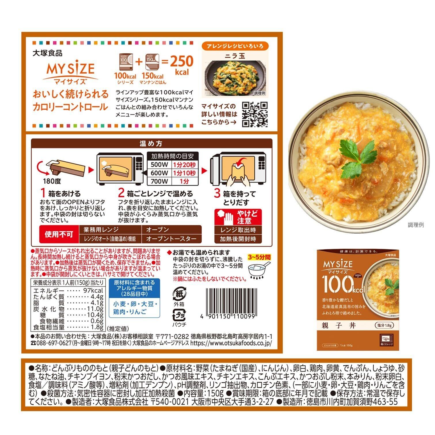 マイサイズ 大塚食品 100kcalマイサイズ 親子丼 150g×10個 カロリーコントロール レンジ調理対応 塩分2g以下設計