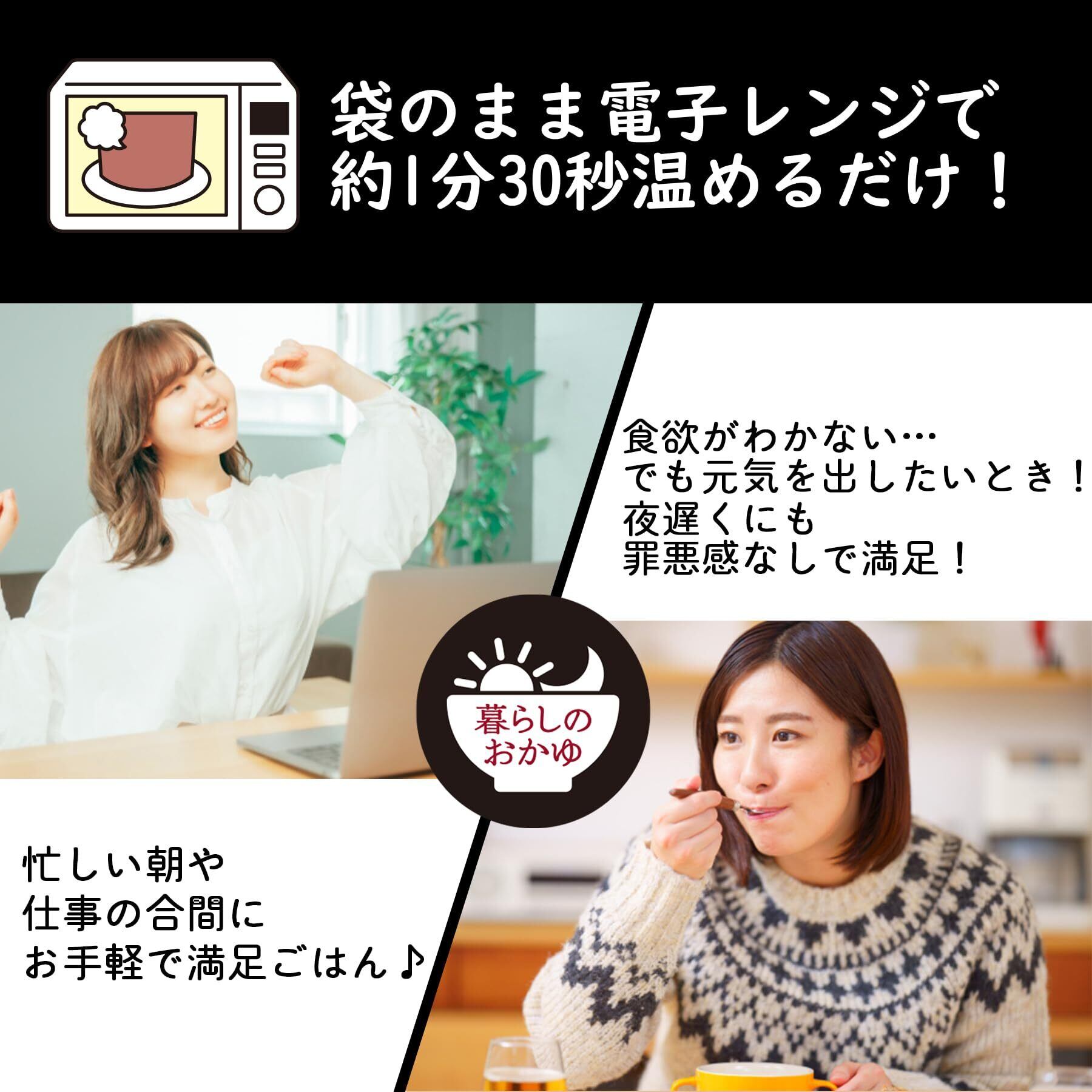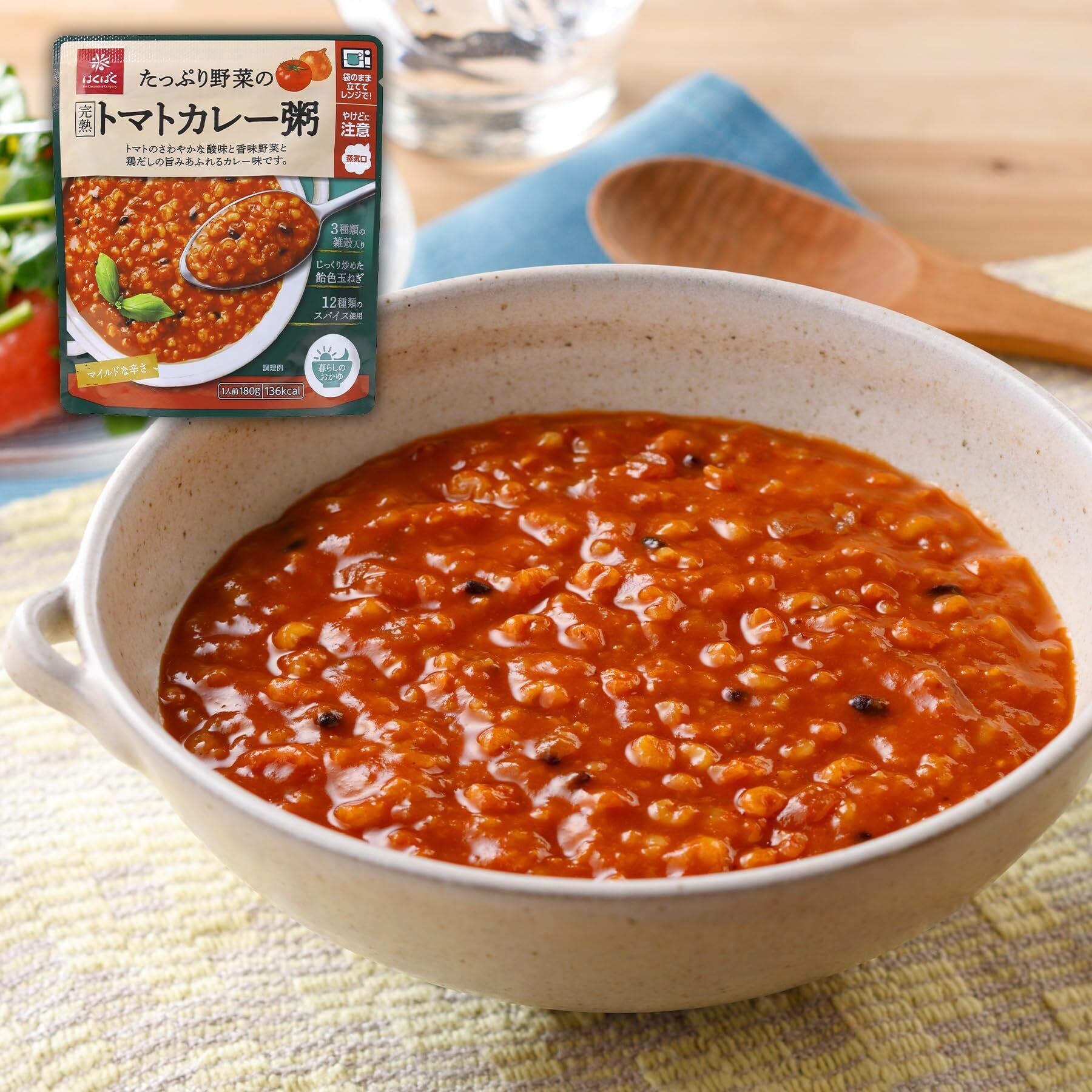 【チゲ粥】鶏卵(国産)、海鮮チゲ風味調味料(貝エキスパウダー、沖アミ・エビ抽出エキスパウダー、砂糖、デキストリン、ガーリックパウダー、その他)、うるち米(国産)、米粒麦、しょうゆ、発芽玄米(玄米(国産))、トマトペースト、チキンブイヨンパウダー/調味料(アミノ酸等)、増粘剤(加工でん粉)、カラメル色素、(一部に卵・えび・小麦・乳成分・大豆・鶏肉を含む) 【コムタン粥】ビーフエキス(国内製造)、うるち米(国産)、コムタン風味調味料(ビーフエキスパウダー、砂糖、デキストリン、粉末油脂、ガーリックパウダー、その他)、米粒麦、発芽玄米(玄米(国産))、ビーフオイル、食塩/調味料(アミノ酸等)、(一部に乳成分・牛肉・大豆を含む) 【和風カレー粥】うるち米(国産)、オニオンソテー、トマトピューレー、米粒麦、発芽玄米(玄米(国産))、カレー風味調味料(砂糖、デキストリン、カレーパウダー、オニオンエキスパウダー、チキンエキスパウダー、粉末油脂、たん白加水分解物、コーンスターチ、その他)、かつお節エキス、しょうゆ、こんぶだし、動物性たん白加水分解物、黒米(国産)、みりん/トレハロース、調味料(アミノ酸等)、香料、カラメル色素、(一部に乳成分・小麦・大豆・鶏肉・豚肉・ごま・ゼラチンを含む) 【トマトカレー粥】トマトピューレー(国内製造)、うるち米(国産)、米粒麦、オニオンソテー、ミルポワペースト、カレー風味調味料(砂糖、デキストリン、カレーパウダー、オニオンエキスパウダー、チキンエキスパウダー、粉末油脂、たん白加水分解物、コーンスターチ、その他)、発芽玄米(玄米(国産))、黒米(国産)、動物性たん白加水分解物、全粉乳、食塩/トレハロース、調味料(アミノ酸等)、香料、カラメル色素、(一部に乳成分・小麦・鶏肉・大豆・鶏肉・豚肉・ごま・ゼラチンを含む)