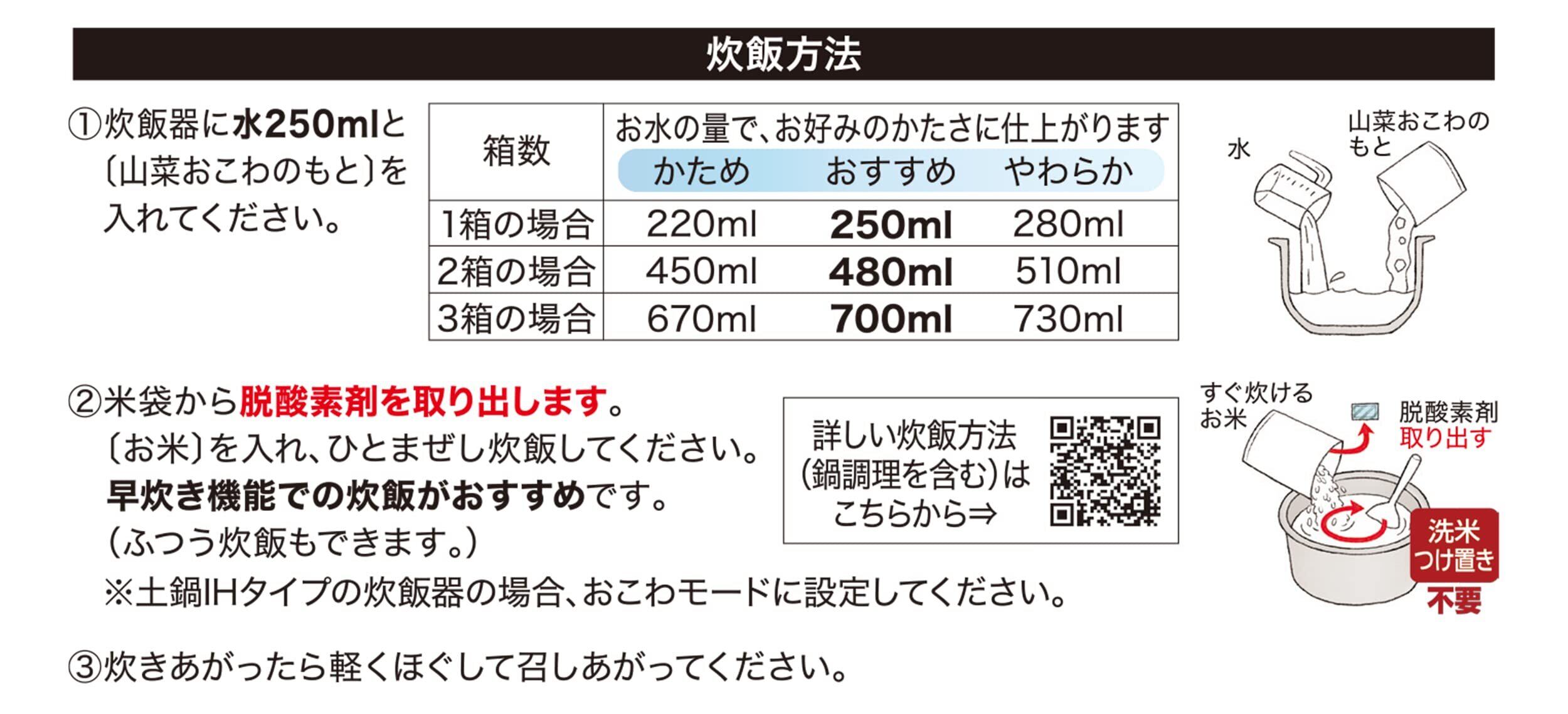 ・内容量320g(乾燥米飯230g、山菜おこわのもと90g)