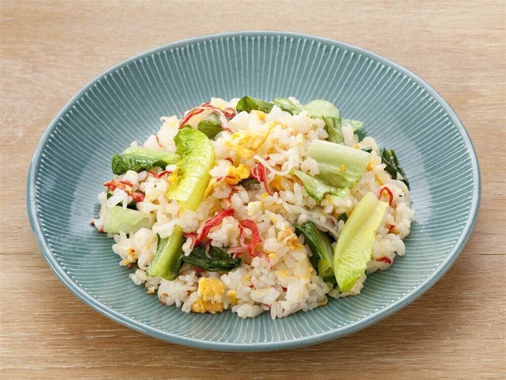油をよく熱し、溶き卵を半熟まで炒めてから、その他の具材とチャーハンベースをふりかけ、よく炒め合わせてください。