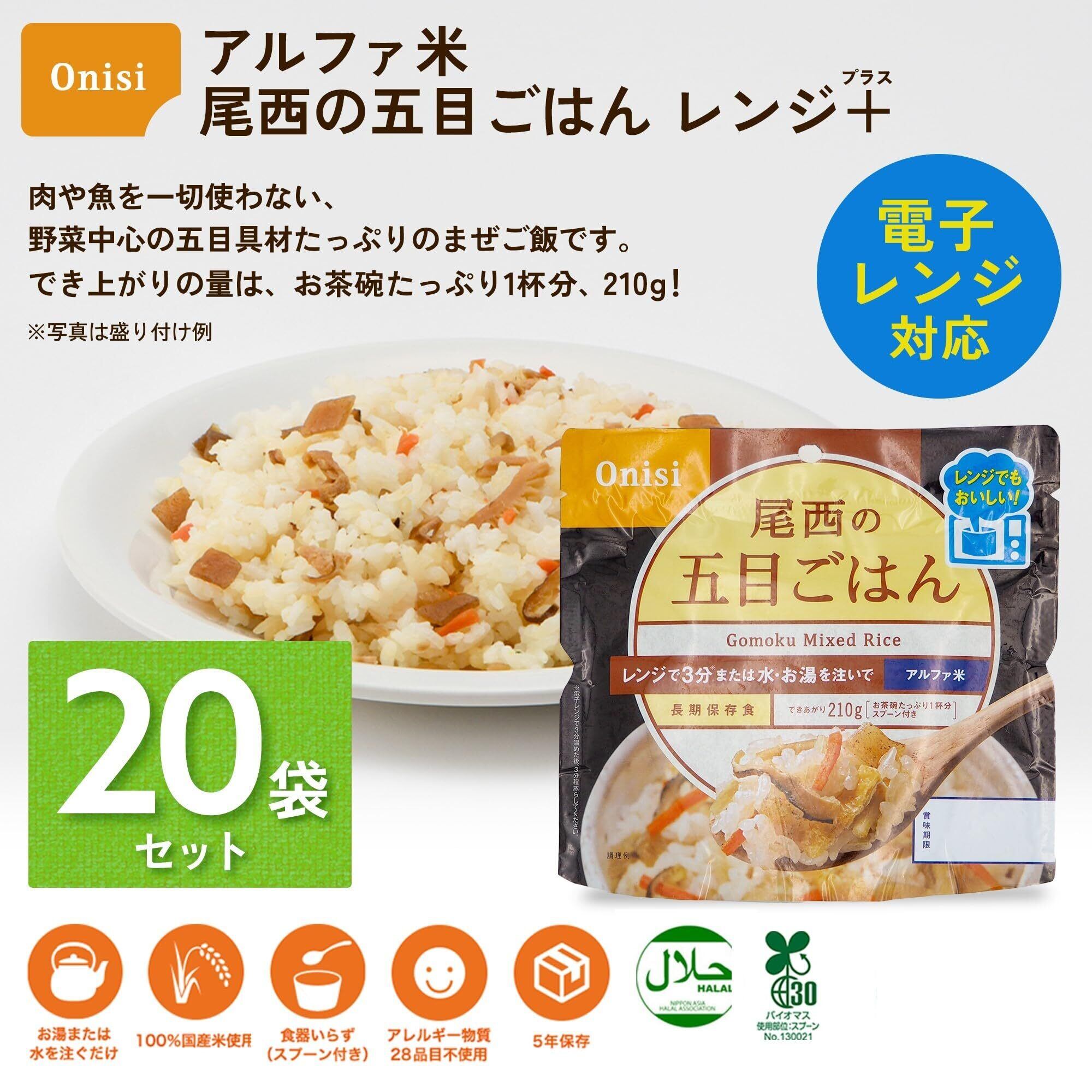 尾西食品 アルファ米 レンジプラス 五目ごはん 80g×20袋 レンジ調理対応 非常食 保存食 長期保存