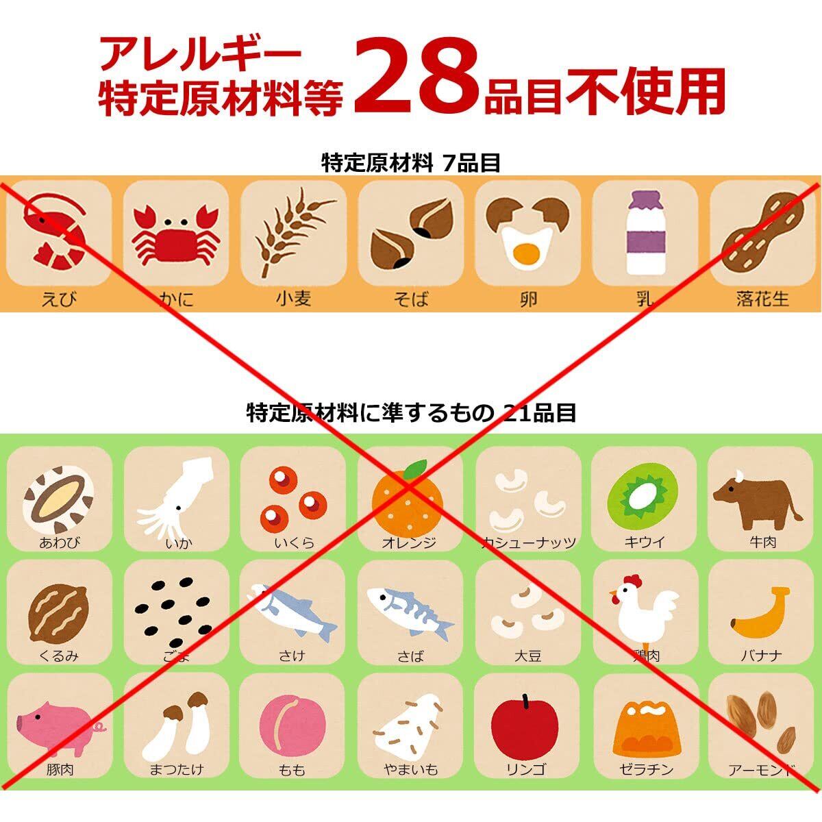 【アレルギー対応】全種類、特定原材料等27品目不使用(同一工場でアレルギー物質を含む商品の加工、梱包をしています)
