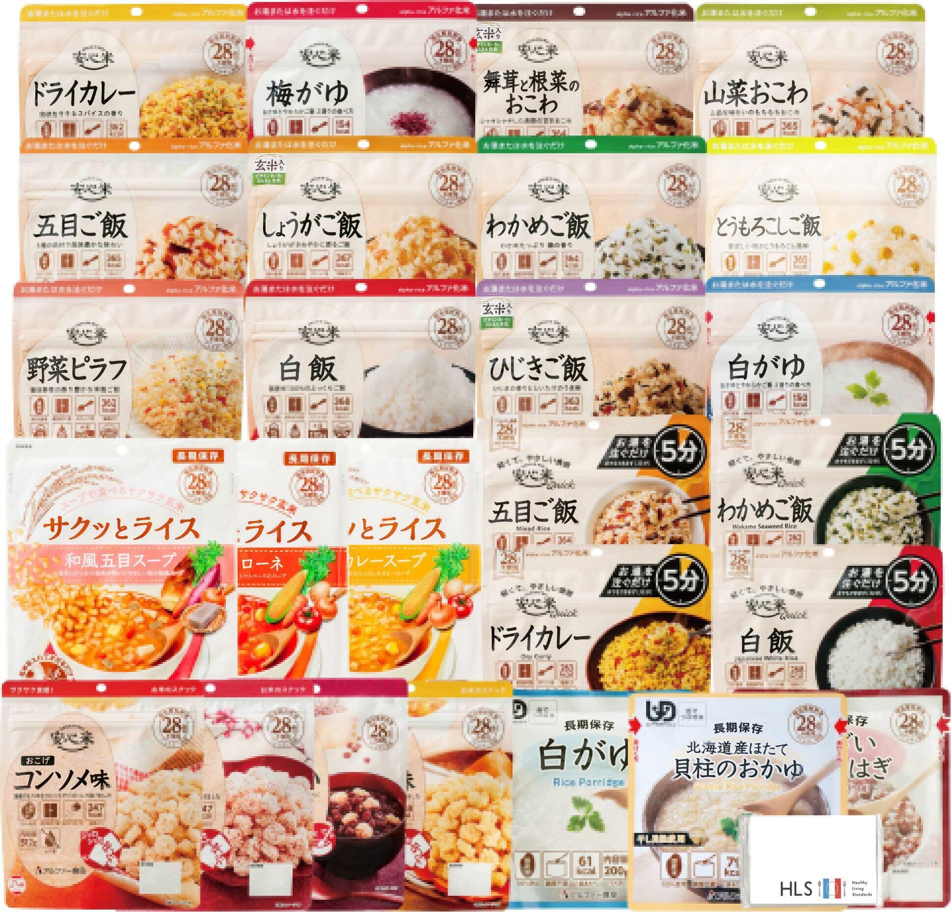 【HLS】 アルファ米 26種セット 非常食 5年 長期保存 保存食 国産米100%使用 国内製造 特定原材料28品目不使用 防災食品 備蓄品 HLS オリジナルポケットティッシュ付