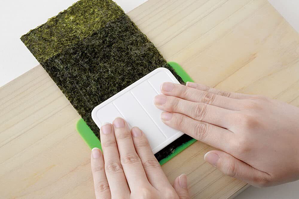 ●専用海苔カッターでおにぎりにぴったりサイズの海苔を4枚同時に抜く事ができる
