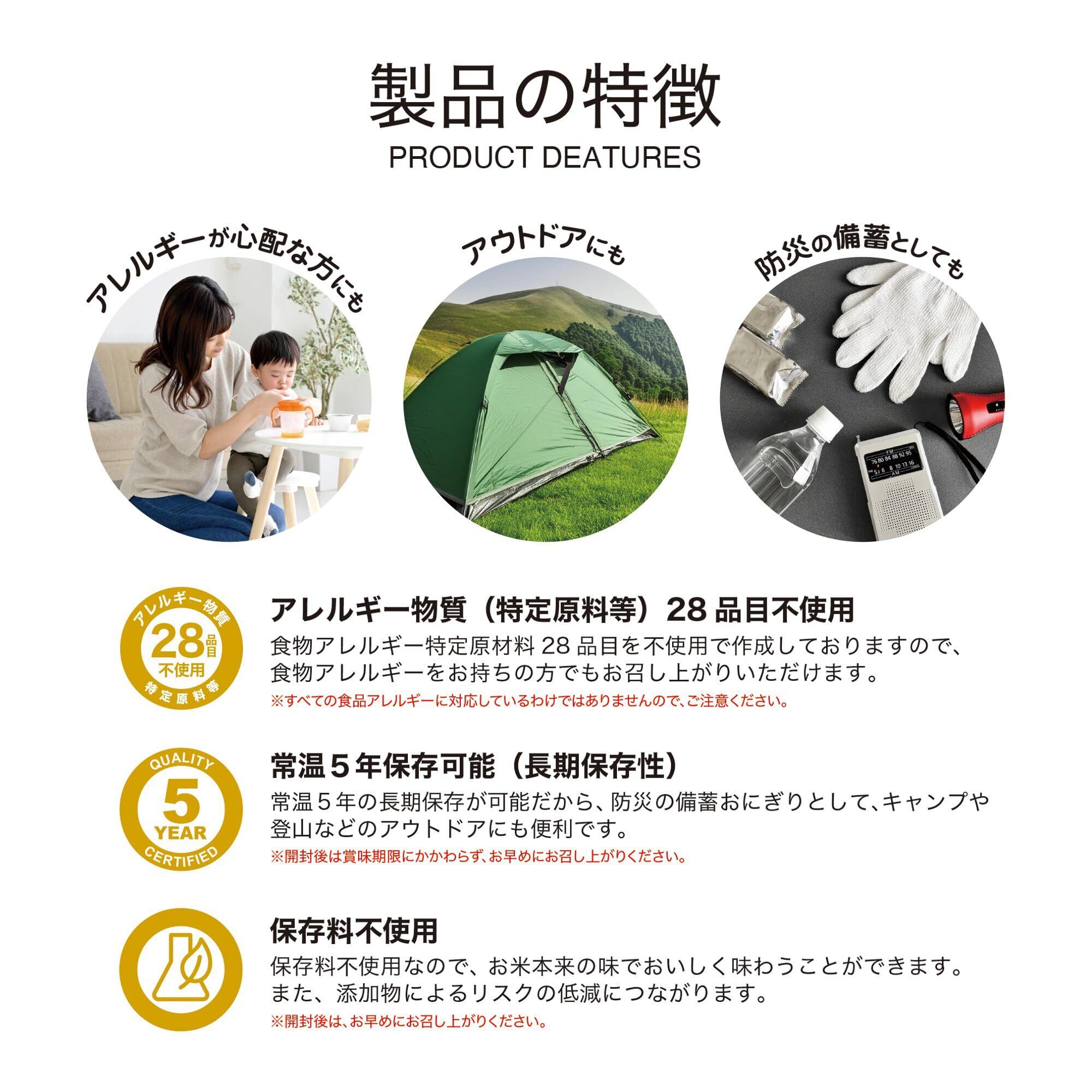 水も火も不要!開けてそのまま食べられる!長期保存おにぎり/ アレルギー物質 (特定原料等) 28品目不使用 新登場! !