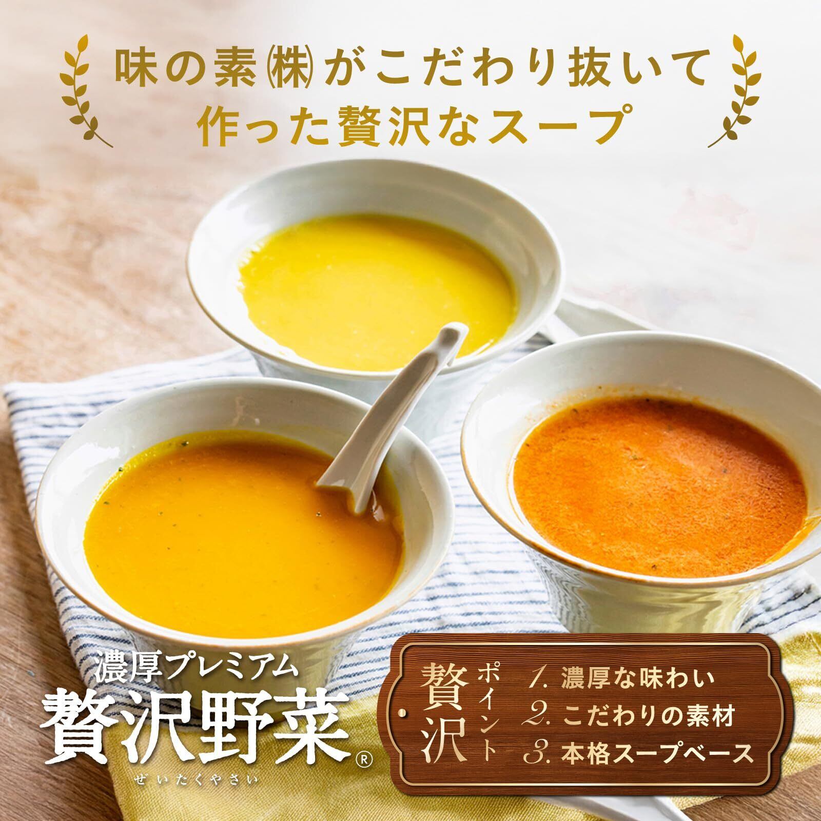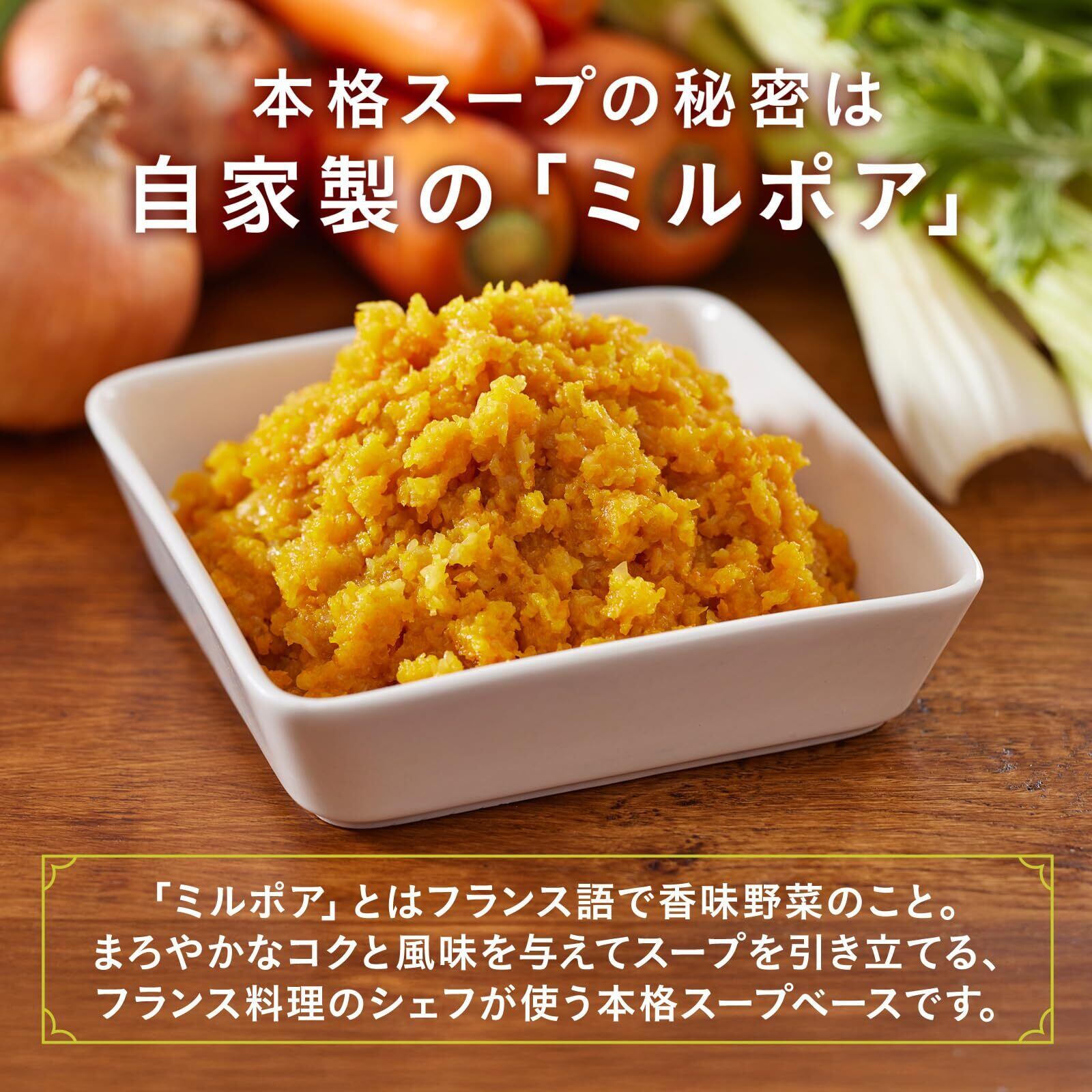 スープに最適な野菜を贅沢に使用し、野菜がたっぷり溶け込んだ手作りのような口当たりと、濃厚で食べ応えのあるおいしさをお楽しみいただけます。