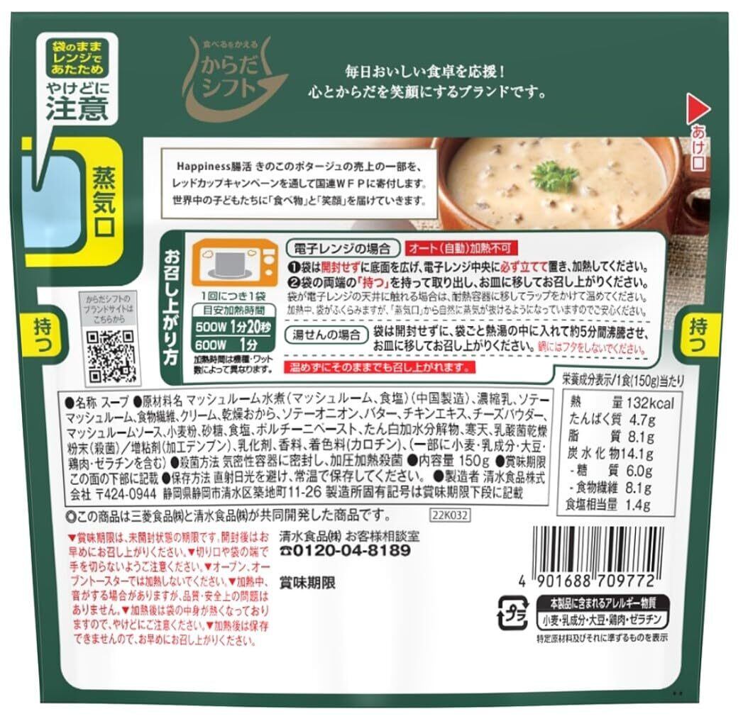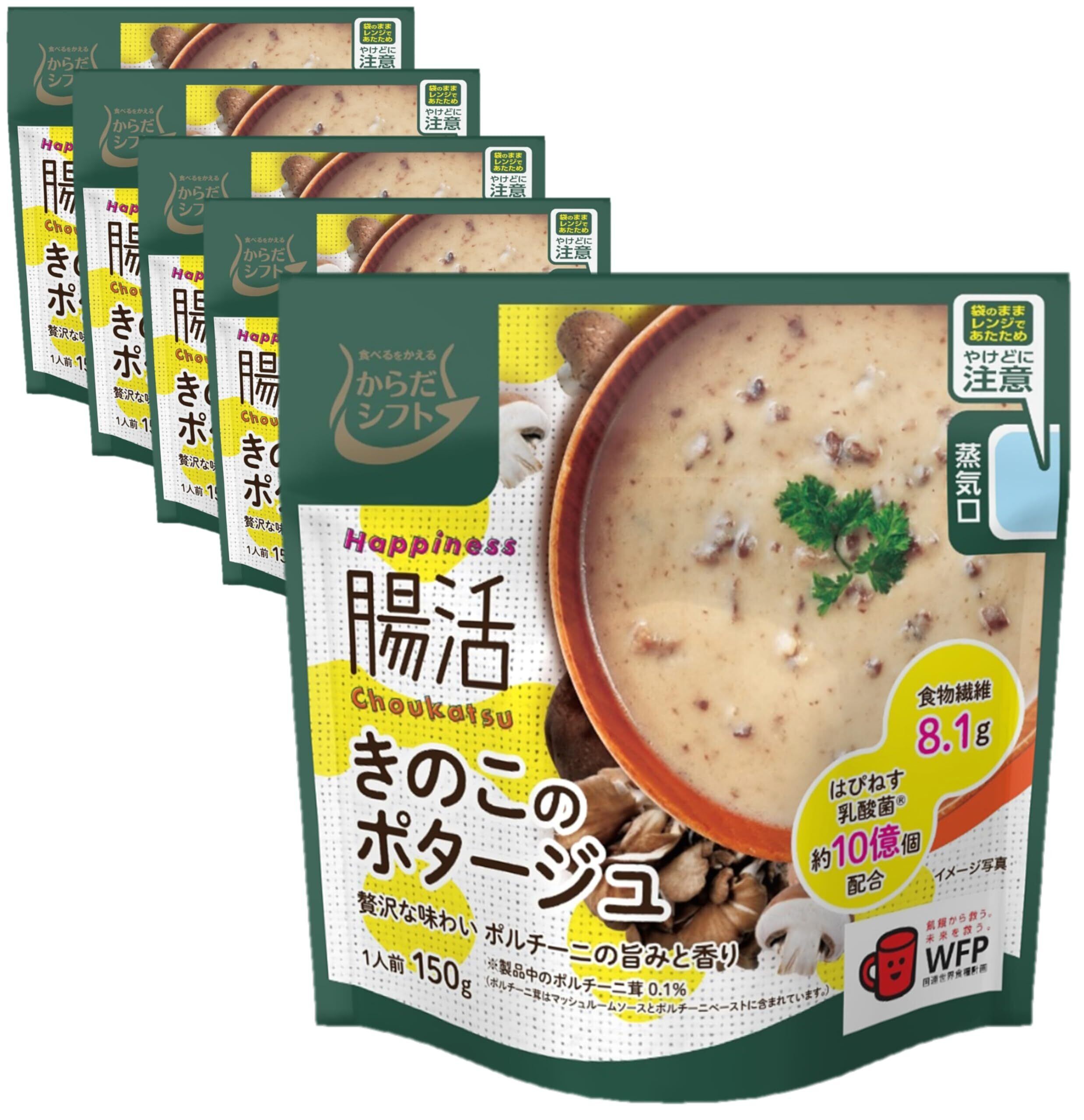 からだシフト Happiness腸活 きのこのポタージュ ( 1人前150g ×5 ) ( 食物繊維 / はぴねす乳酸菌®約10億個配合 ) 一人暮らしの方にも (簡単調理 ) レトルト 手軽 スープ