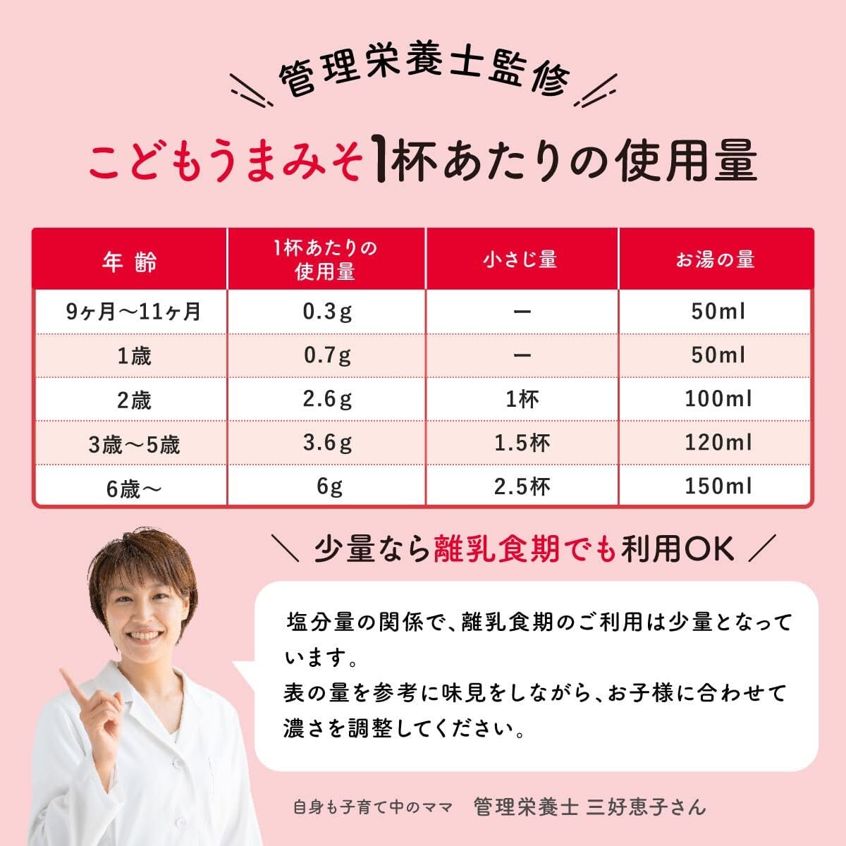 【お子様が笑顔になるくらいおいしい】 マイルドな白味噌にオリゴ糖と米麹を少し加えてほんのり甘めに。お子様が笑顔になるような味付けを目指しました。