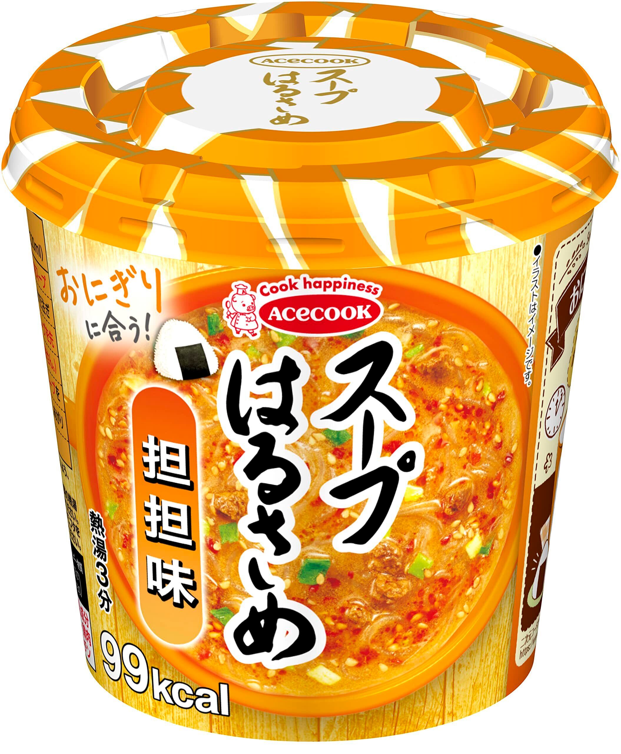 みんなに愛されて20thAnniversary! 20周年を記念し、ミッフィーが寄り添う可愛らしいパッケージデザインで楽しい食事を演出! エースコックのスープはるさめシリーズは、「おいしいヘルシー、ちょうどいい。」をコンセプトに、おにぎりをはじめ色々なものと組み合わせて食べるのにちょうどいい量・味・カロリーを目指す事で、いつもの食事に彩りと広がりを提供するカップスープです。 「スープはるさめ 担担味」 旨みのある豚エキスや豆板醤などを使用し、すりごまとねりごまをたっぷり加えた辛さの中に甘みとコクが味わえる担担味スープです。具はほど良く味付けした肉そぼろ、ねぎ、唐辛子、香りが広がるごまで仕上げました。(99kcal)