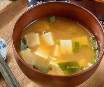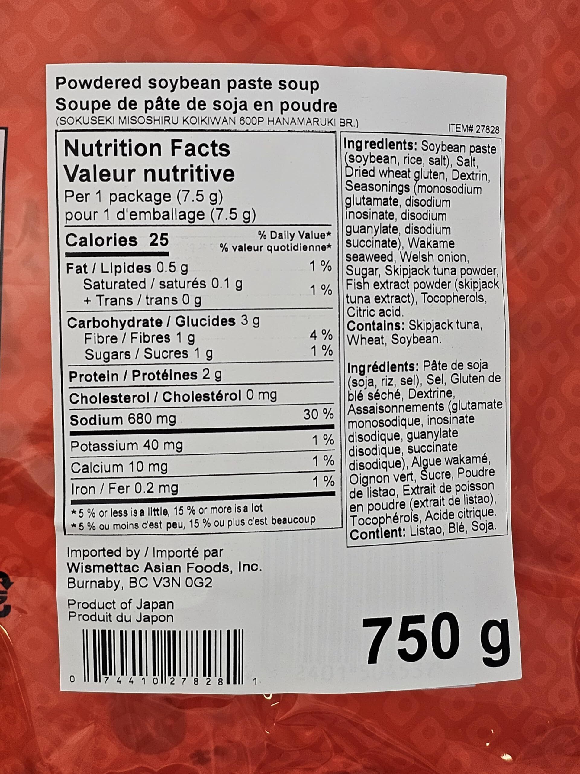米みそ、食塩、ふ、デキストリン、わかめ、ねぎ、砂糖、かつおぶし粉末、かつおエキス粉末、調味料(アミノ酸等)、酸化防止剤(ビタミンE)、pH調整剤、(原材料の一部に小麦を含む)