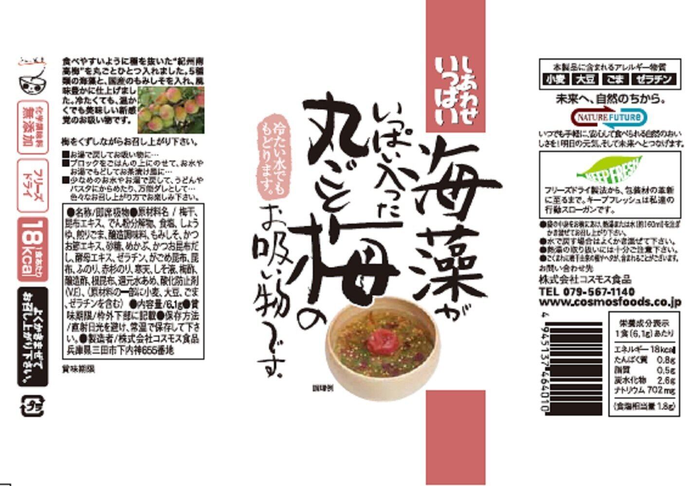 コスモス食品 フリーズドライ 海藻がいっぱい入った丸ごと梅のお吸い物 お吸い物 常温 備蓄 即席 スープ