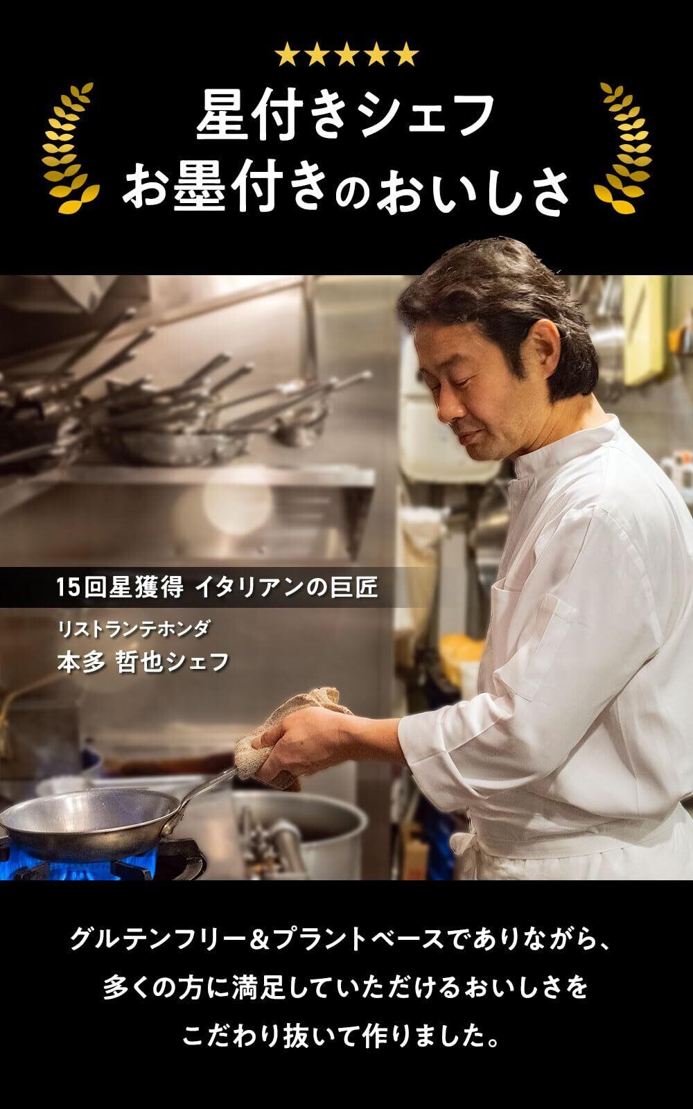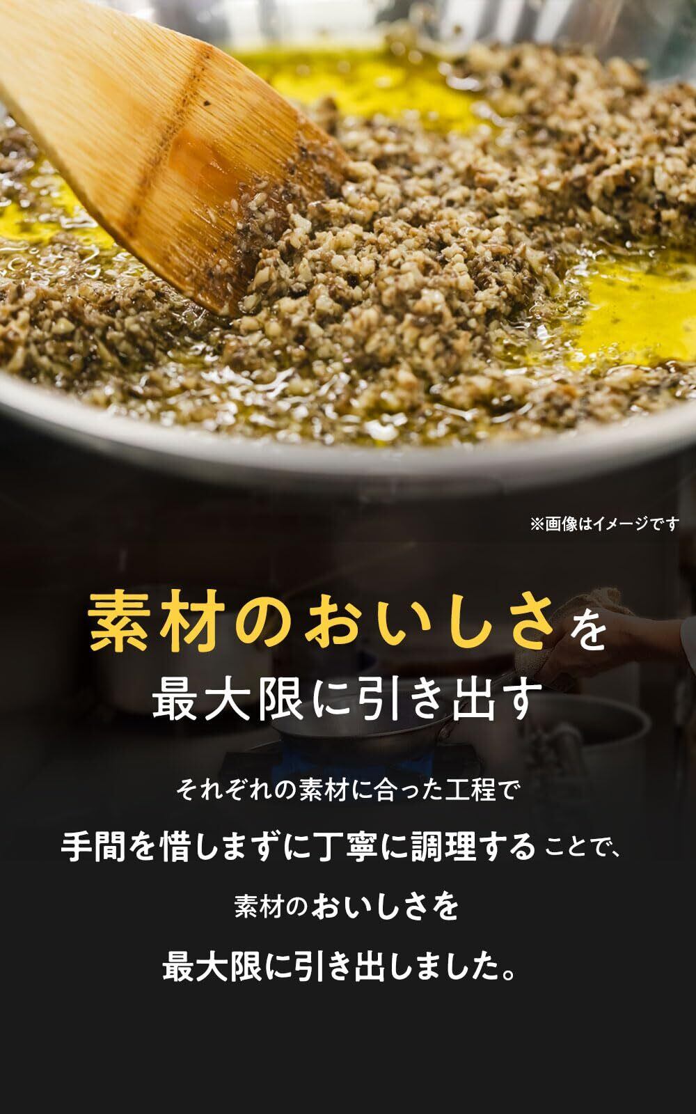 パスタソース:植物由来。カラダにやさしいパスタソースは、15回星を獲得・イタリアンの巨匠も認める本格派のおいしさ。袋のまま、電子レンジで約1分秒温めるだけ。あとは麺と混ぜ合わせれば。誰でも手軽に本格派のパスタランチをご自宅で。