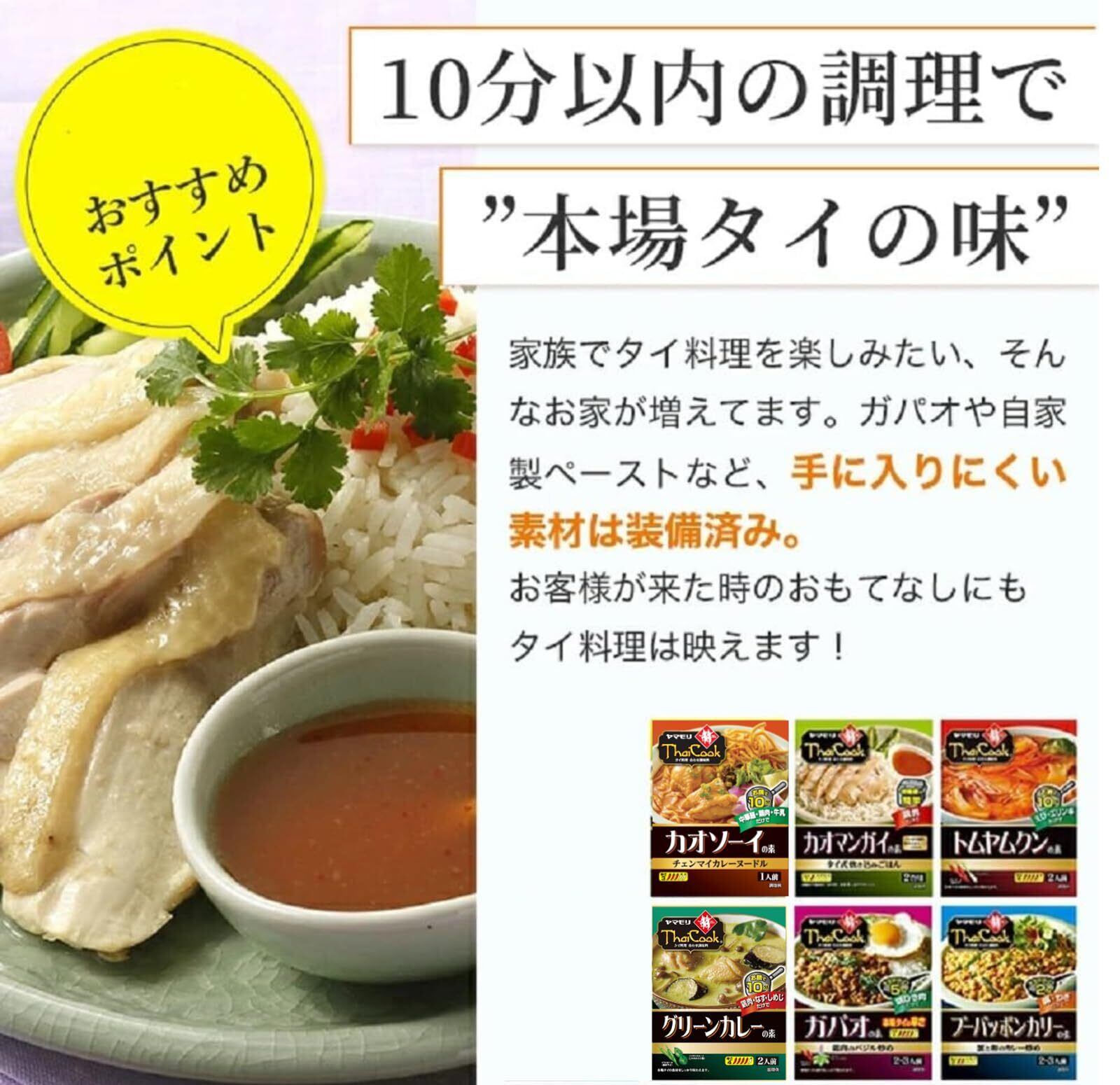 ヤマモリ タイクックシリーズは身近な食材と簡単調理で本格的なタイ料理ができあがるタイ料理の素です。