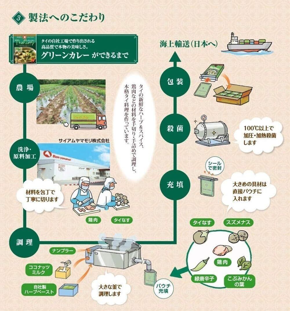 原材料:【グリーンカレーの素】ココナッツミルク、カレーペースト(レモングラス、にんにく、唐辛子、シャロット、食塩、こぶみかんの皮、ガランガル、ケール、その他)、ナンプラー、砂糖、ココナッツパウダー(乳成分を含む)、レモングラス、にんにく、ガランガル、バジル、パクチーの根、こぶみかんの葉、唐辛子、ターメリック、こぶみかんの皮、パクチーの種、ホワイトペッパー、クミン/調味料(アミノ酸) ※その他商品の原材料はパッケージを御確認ください