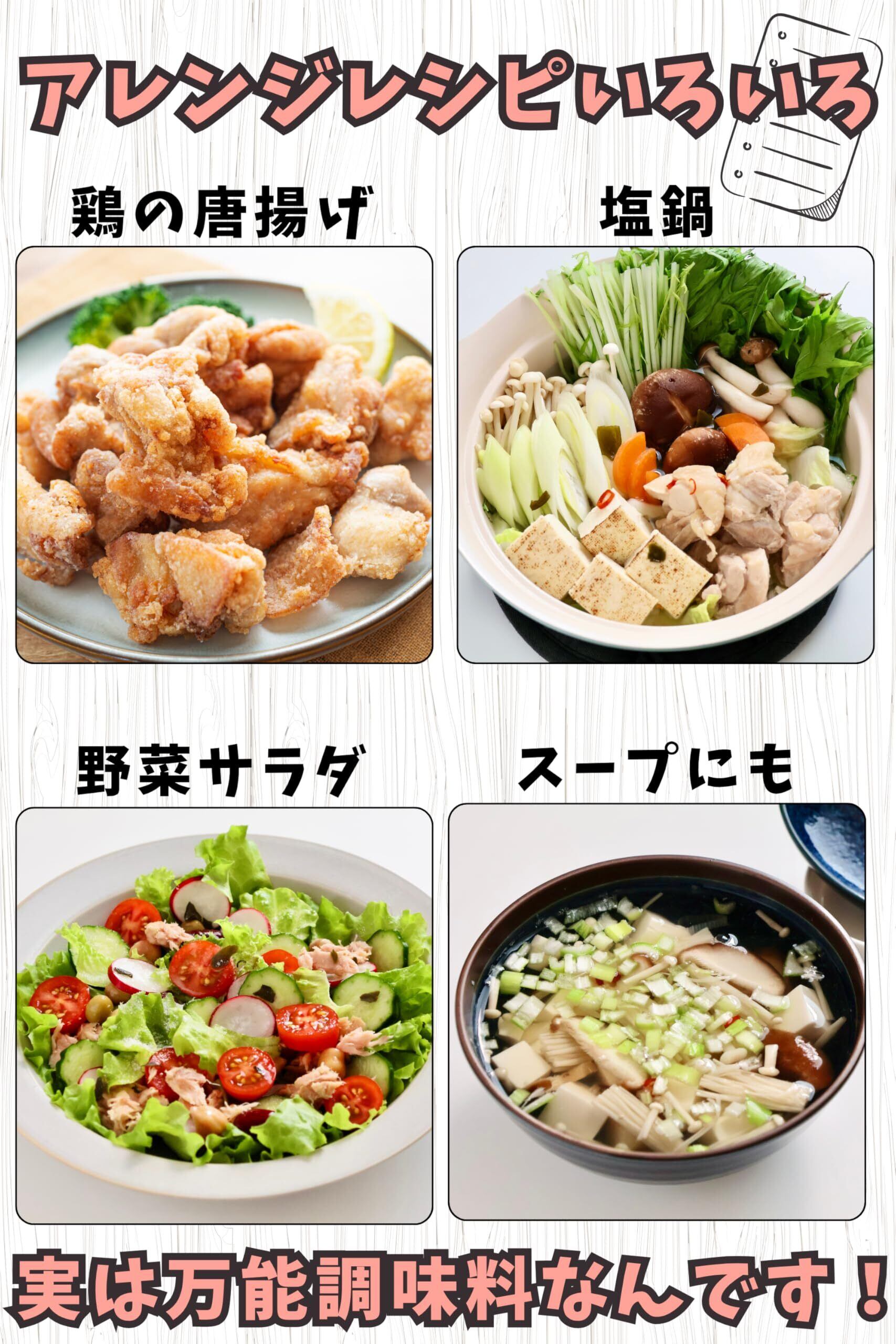 野菜サラダやお鍋の味つけも本品だけで。