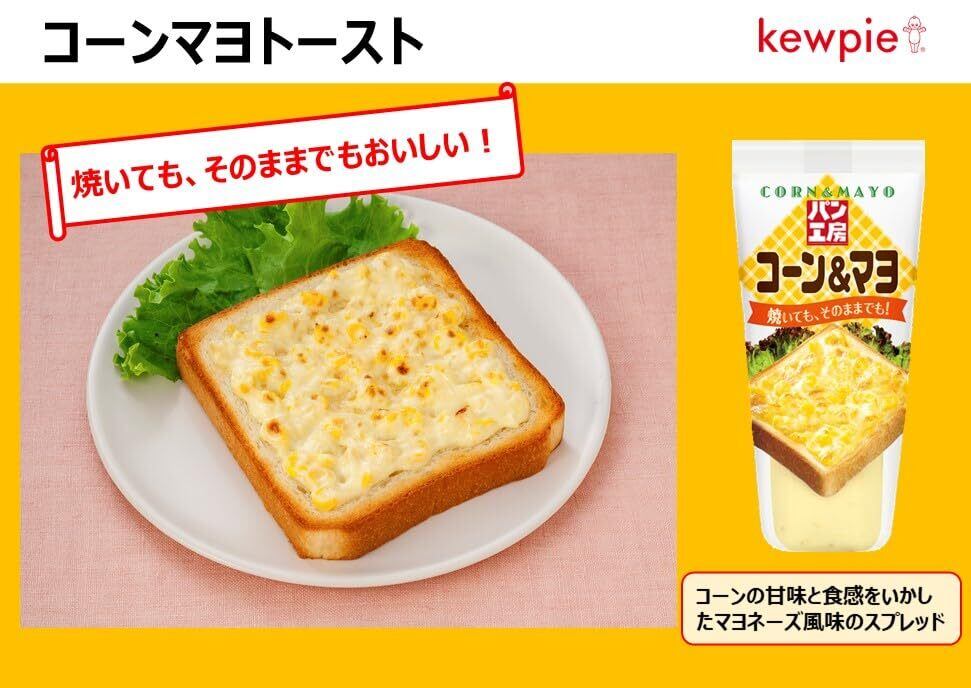 【コーン&マヨ】コーン本来の甘みをいかしたマヨネーズ風味のスプレッドです。焼かずにサンドイッチの具としてもおいしく召しあがれます。