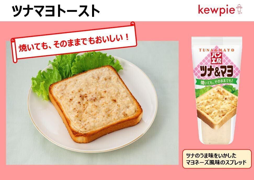 【ツナ&マヨ】ツナのうま味をいかしたマヨネーズ風味のスプレッドです。焼かずにサンドイッチやおにぎりの具としてもおいしく召しあがれます。