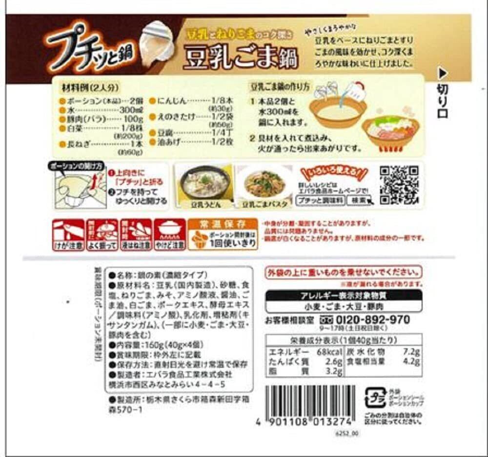 [ エバラ ] プチッと鍋 豆乳ごま鍋 40g ×4個 3袋セット (鍋の素 鍋つゆ 鍋スープ ごま豆乳鍋)