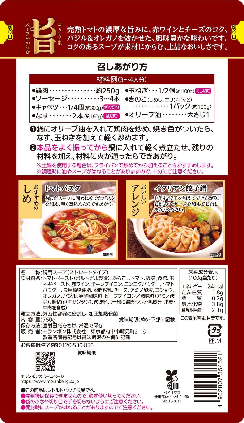 モランボン コク旨スープがからむ 完熟濃厚トマト鍋用スープ750g