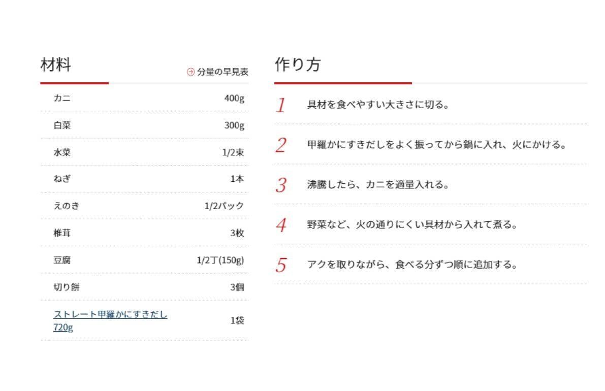 ●かに料理専門店「甲羅本店」のかにすきだしの味を忠実に再現しました。