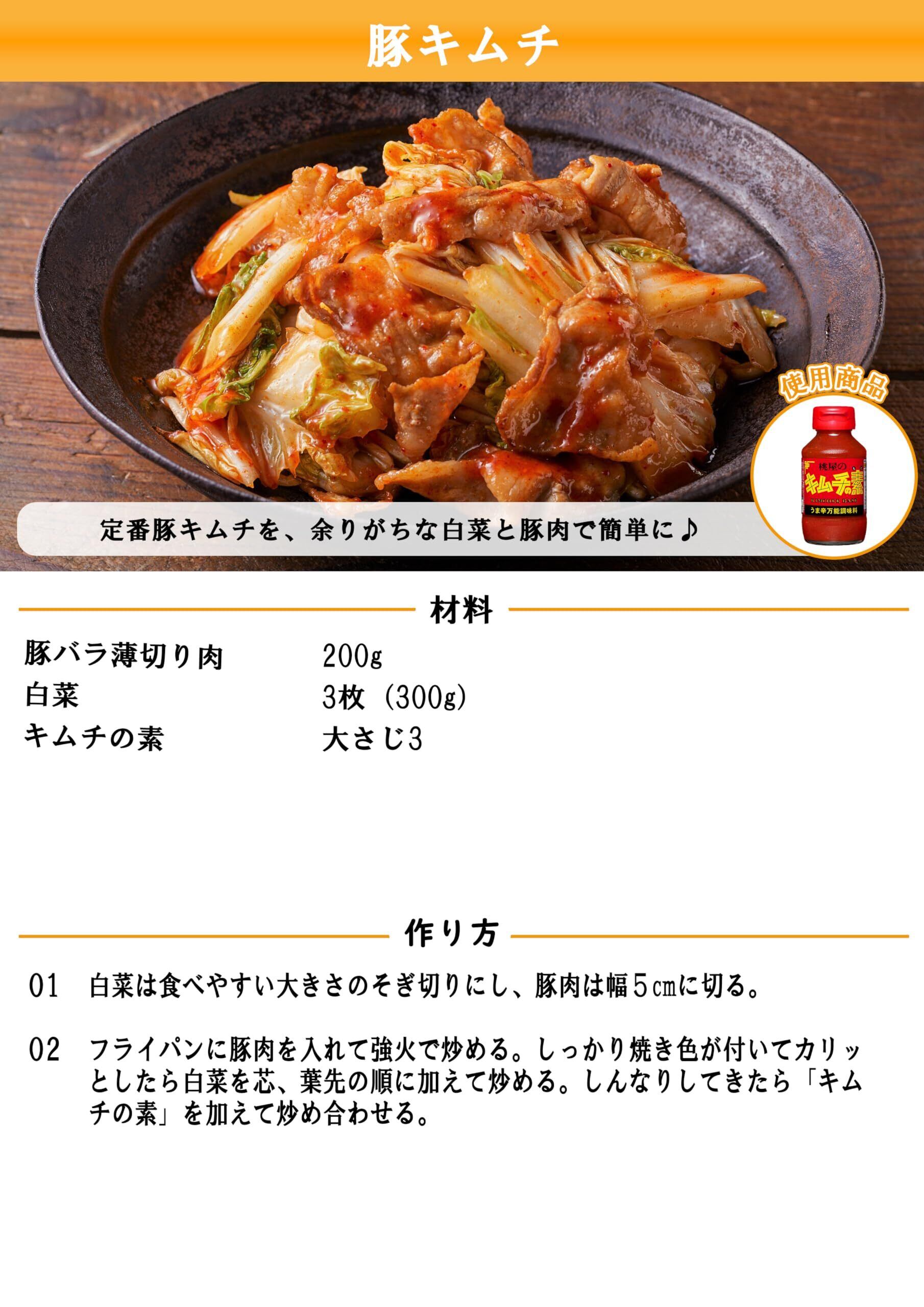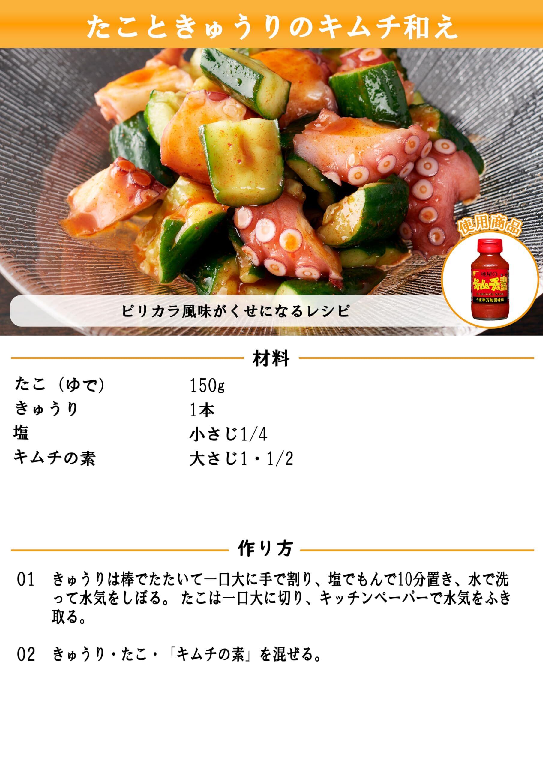 商品特徴:香り高く甘みが強い粗びき唐辛子と、刺激的な辛さがポイントの一味唐辛子を使用し、にんにく・みかん・りんご・生姜をたっぷりと使用した濃厚なキムチの素です。