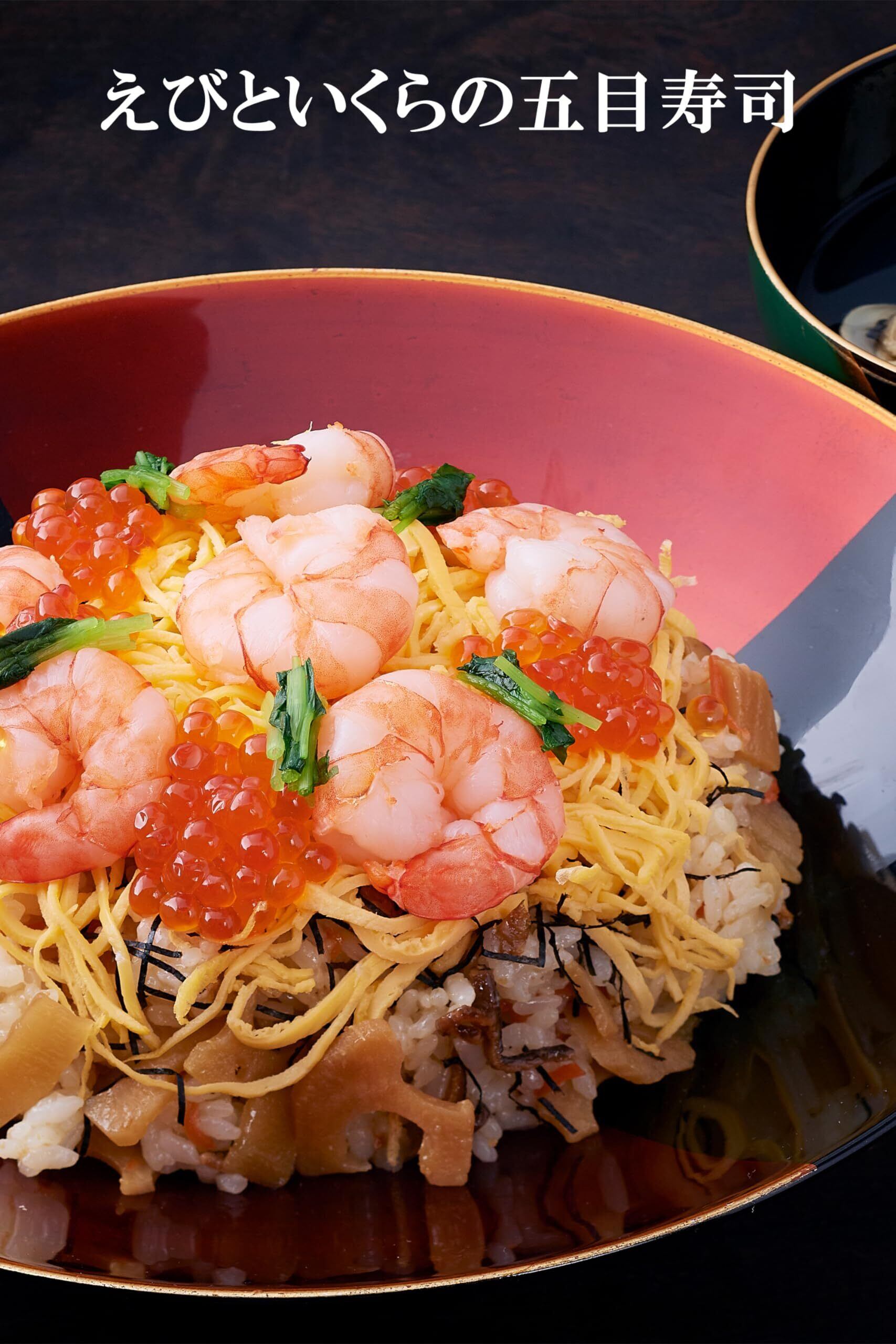 醤油の使用量をひかえ、酢飯が薄色に仕上がるように工夫してありますので、たっぷりの具が映えた、見た目も豪華な五目寿司が出来上がります。