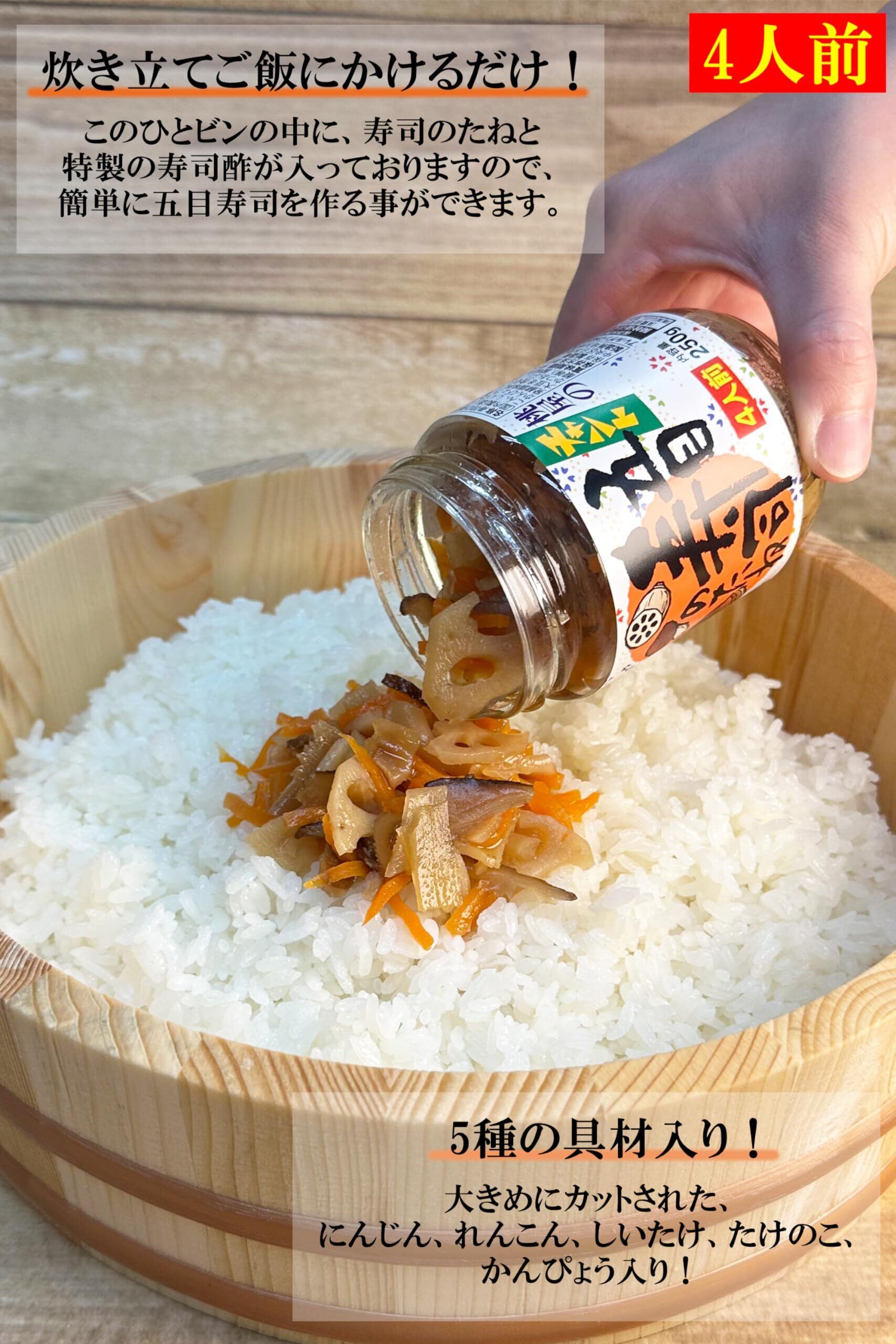 にんじん、れんこん、しいたけ、たけのこ、かんぴょう、砂糖、醸造酢、食塩、発酵調味料、昆布エキス、しょうゆ(小麦を含む)、かつおぶし、調味料(アミノ酸等)