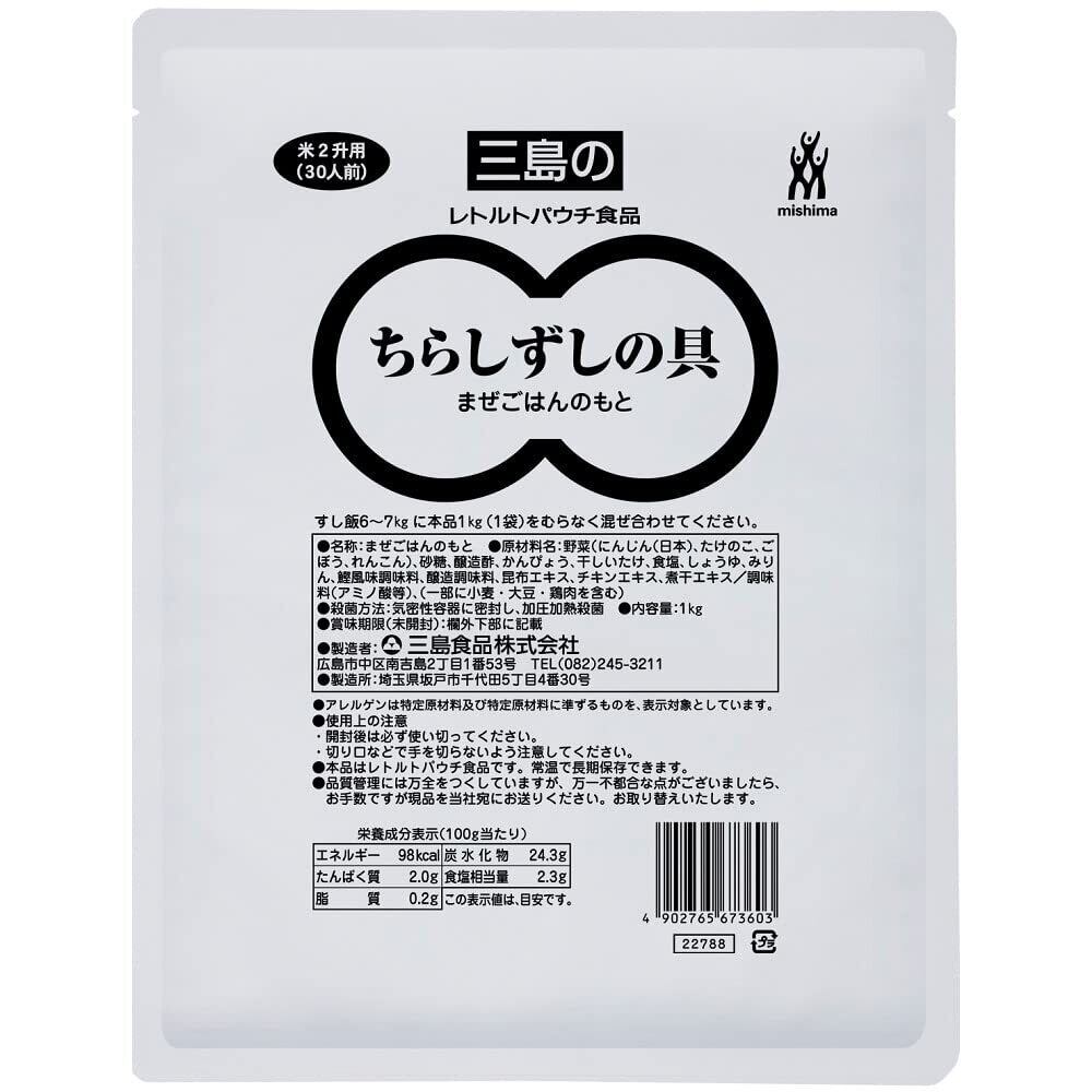6種類の具材をバランスよく配合した、ちらしずしの素です。すし飯に混ぜるだけで、手軽に具だくさんのちらしずしが出来上がります。年間を通してのメニューにご利用いただけます。また、トッピングにより季節感を演出できます。すし飯6~7kgに本品1袋をむらなく混ぜ合わせてください。(アレルゲンは、日本で表示の対象となる28品目について記載しています。)