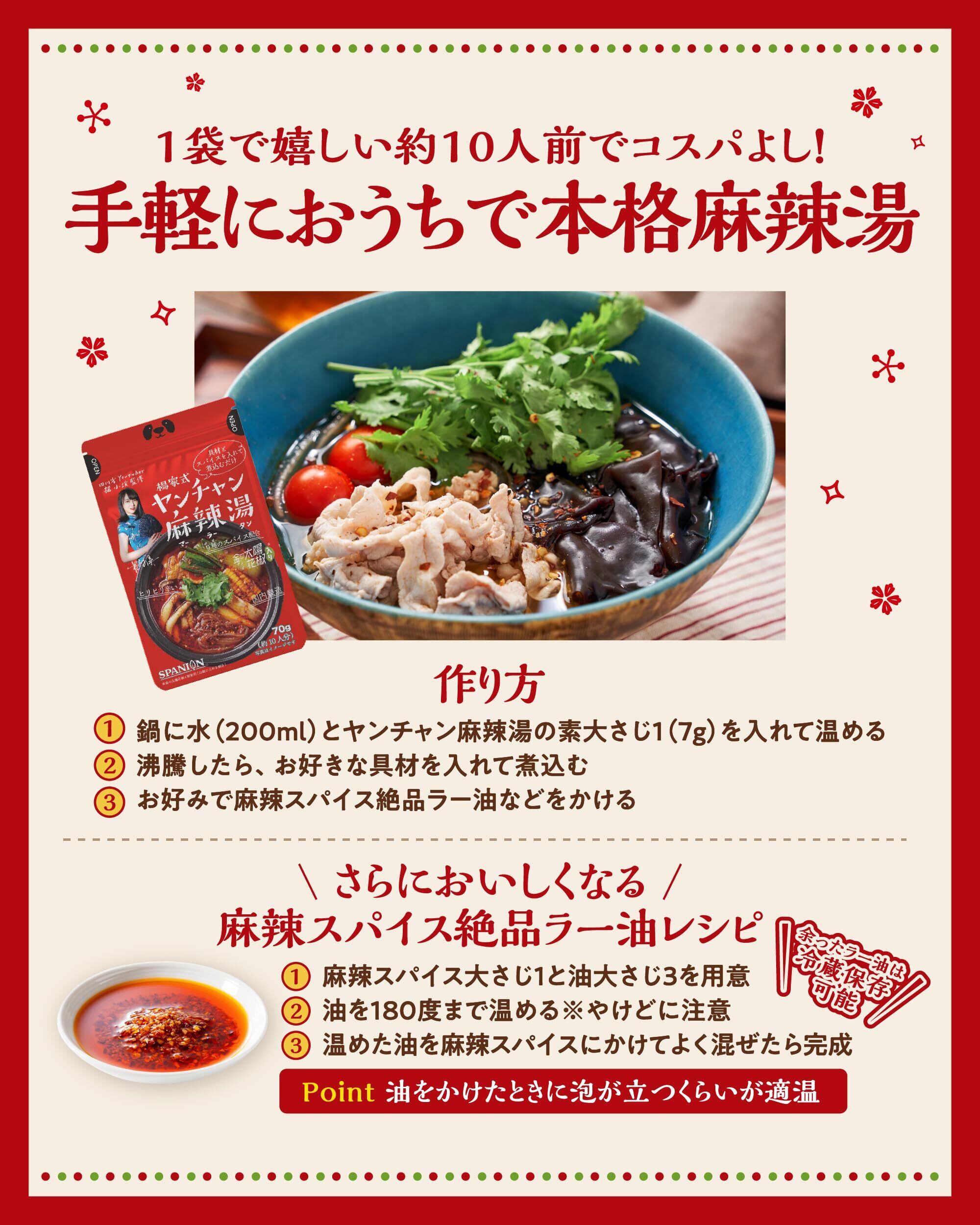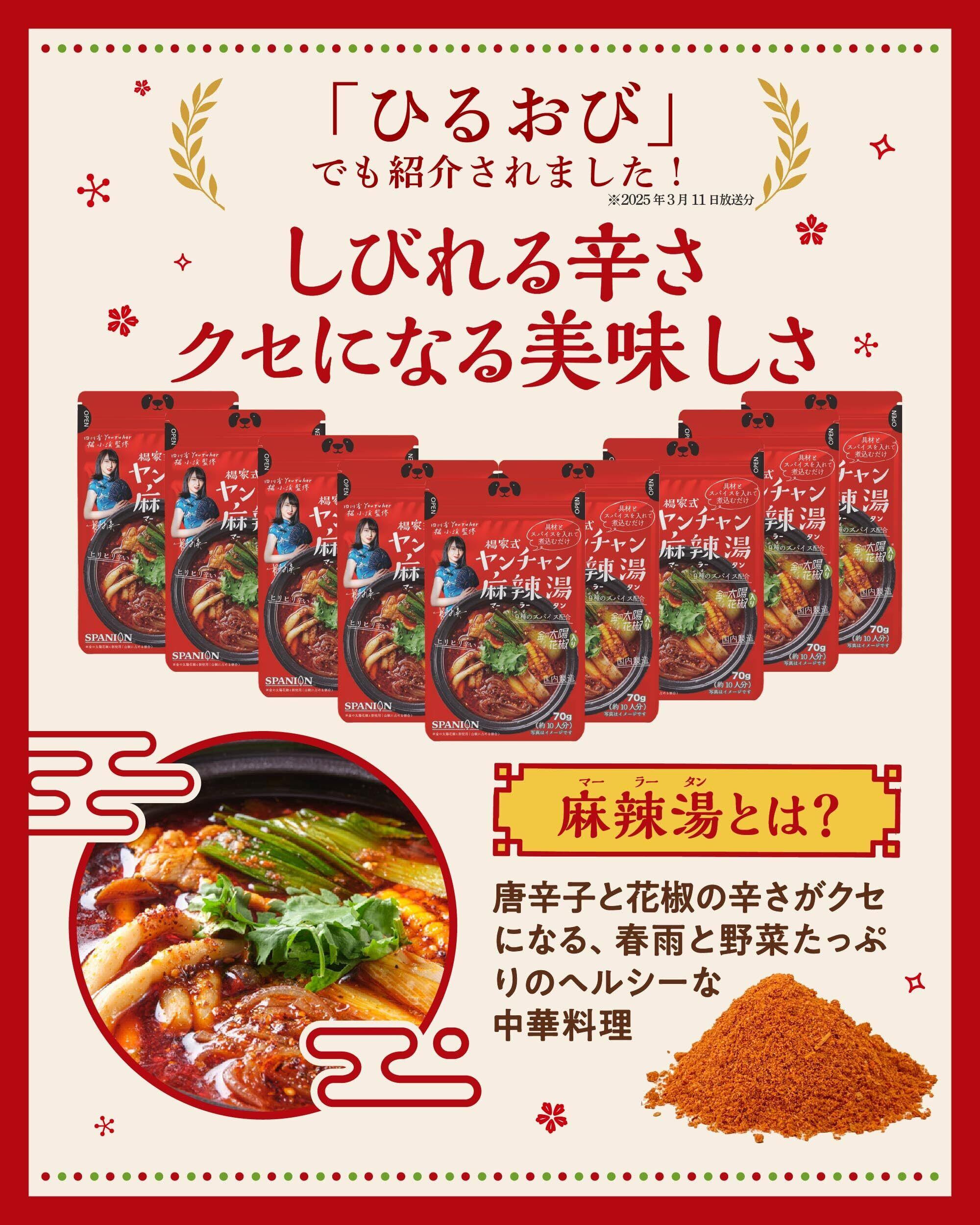 「ひるおび」で紹介! SPANION 麻辣湯の素 70g 麻辣湯 マーラータン 火鍋 鍋の素 麻辣醤 四川省出身ヤンチャン監修